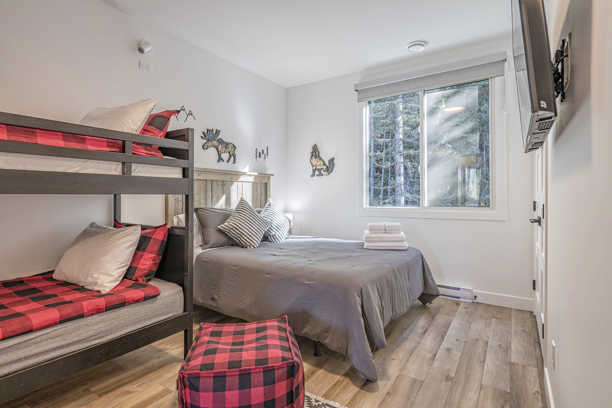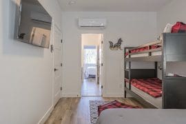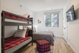 The third bedroom features fun bunk beds and is perfect for the kids, along with a queen bed and a TV too!