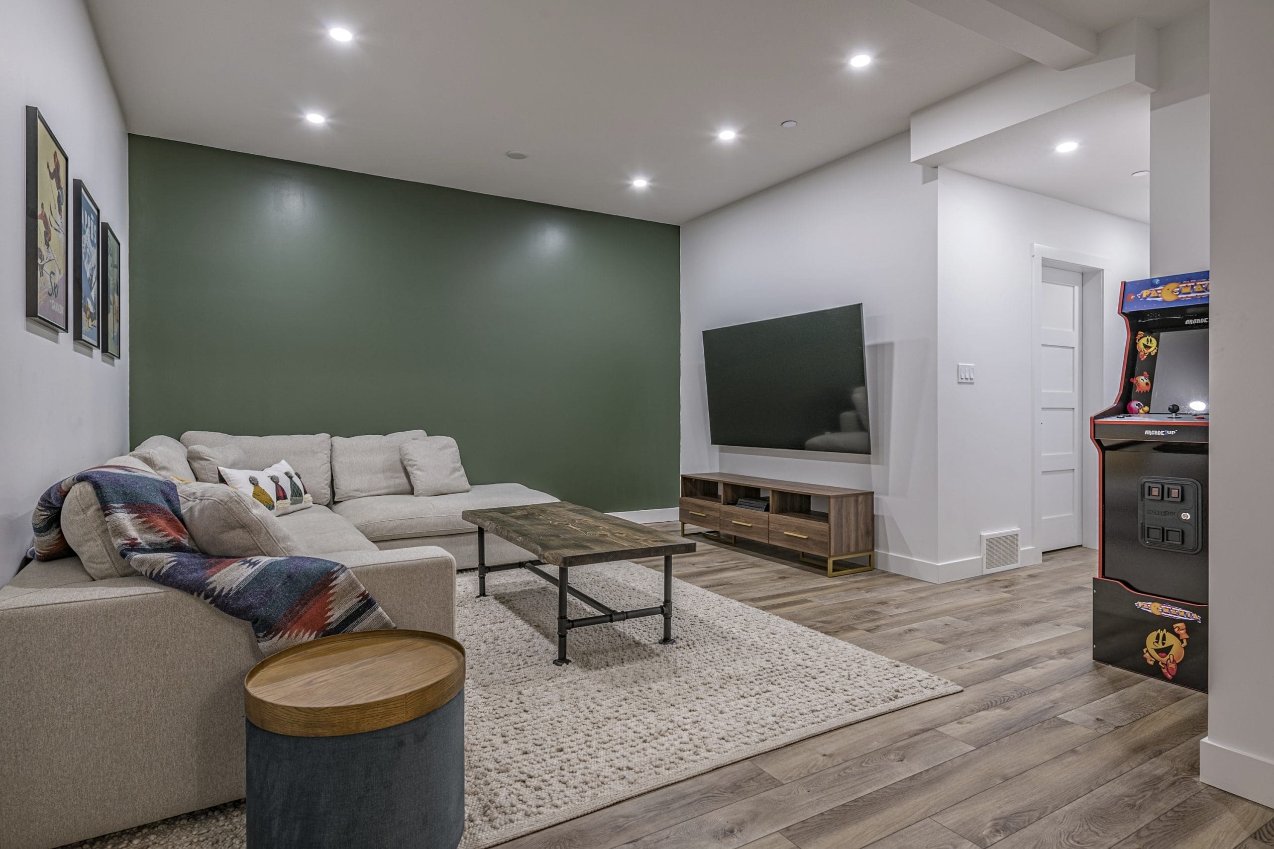 Walk in the front door to a large entryway with heated floors throughout. From here have direct access to the single-car garage, which features a ski bench and waxing station. On this level, enjoy the large media room which is perfect for the kids or teens in your group. You can watch a movie and game on the Playstation 4 while relaxing on the large sectional at the end of the day or play Pac-Man, Galaga or Dig Dug on the stand-up arcade machine! There is also a powder room just off the media room for you to use.