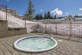 The shared outdoor hot tub in the Wintergreen building in Creekside is open during the ski season. For the summer and bike season, there is one hot tub open in the Creekside complex for all guests to use.