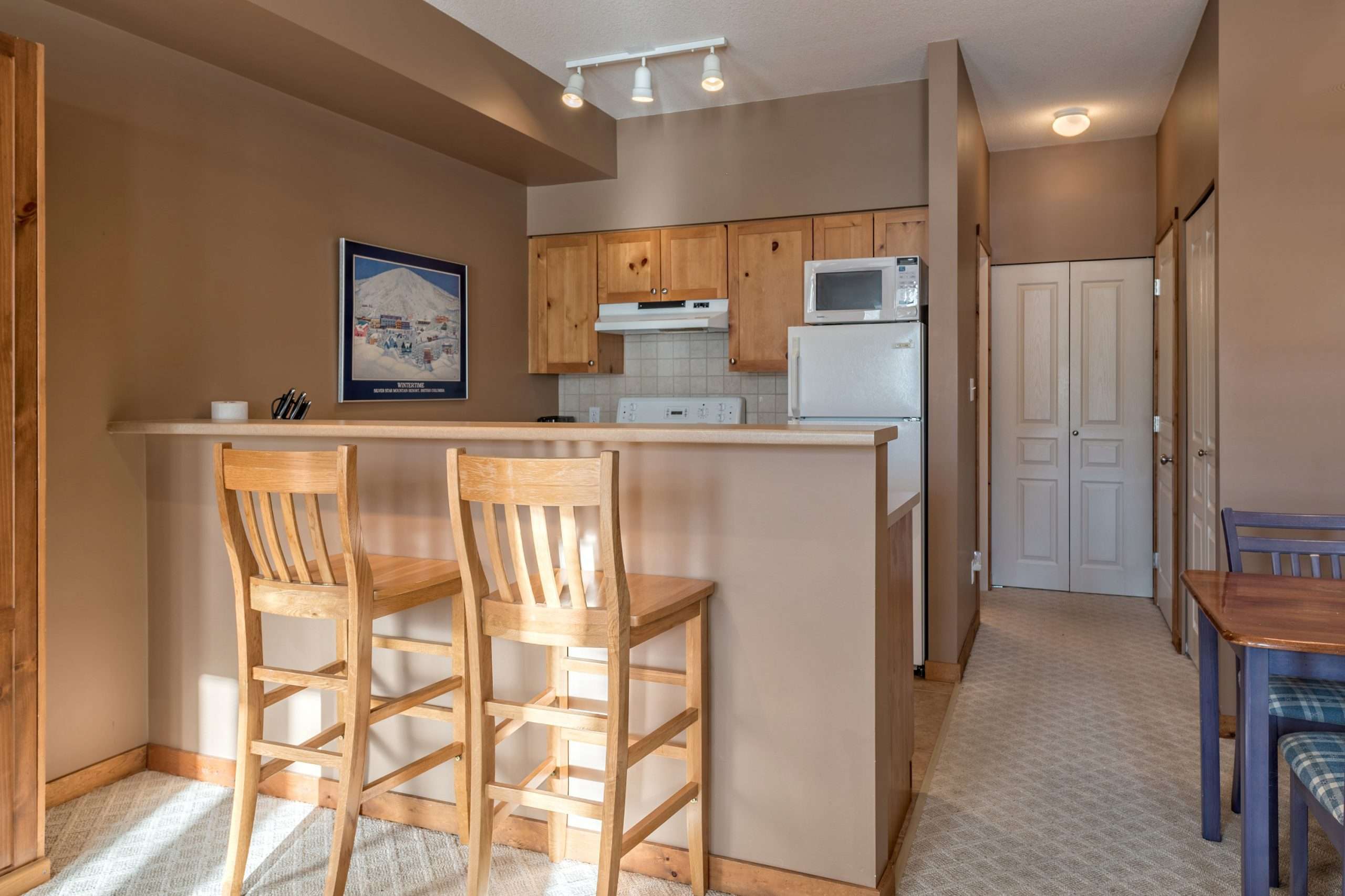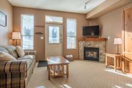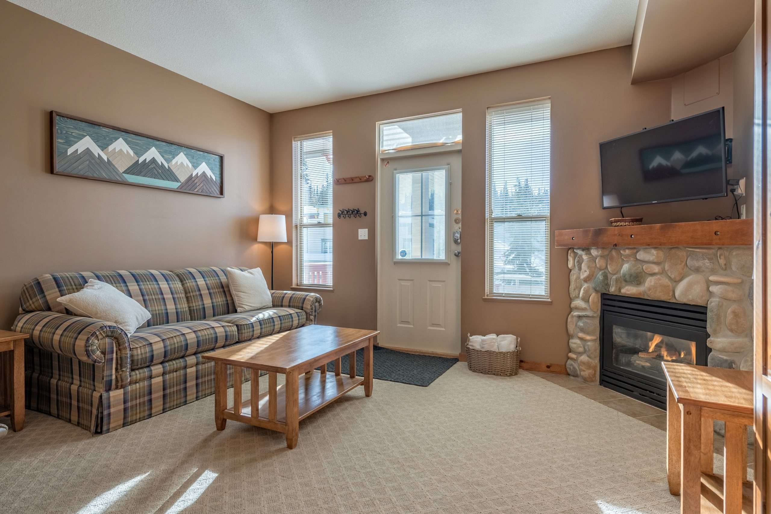 This condo has a fully equipped kitchen, comfy living room with a gas fireplace and sits just steps away from the shared hot tub and ski room. Quick and easy access to the Silver Queen Chair and tube town.