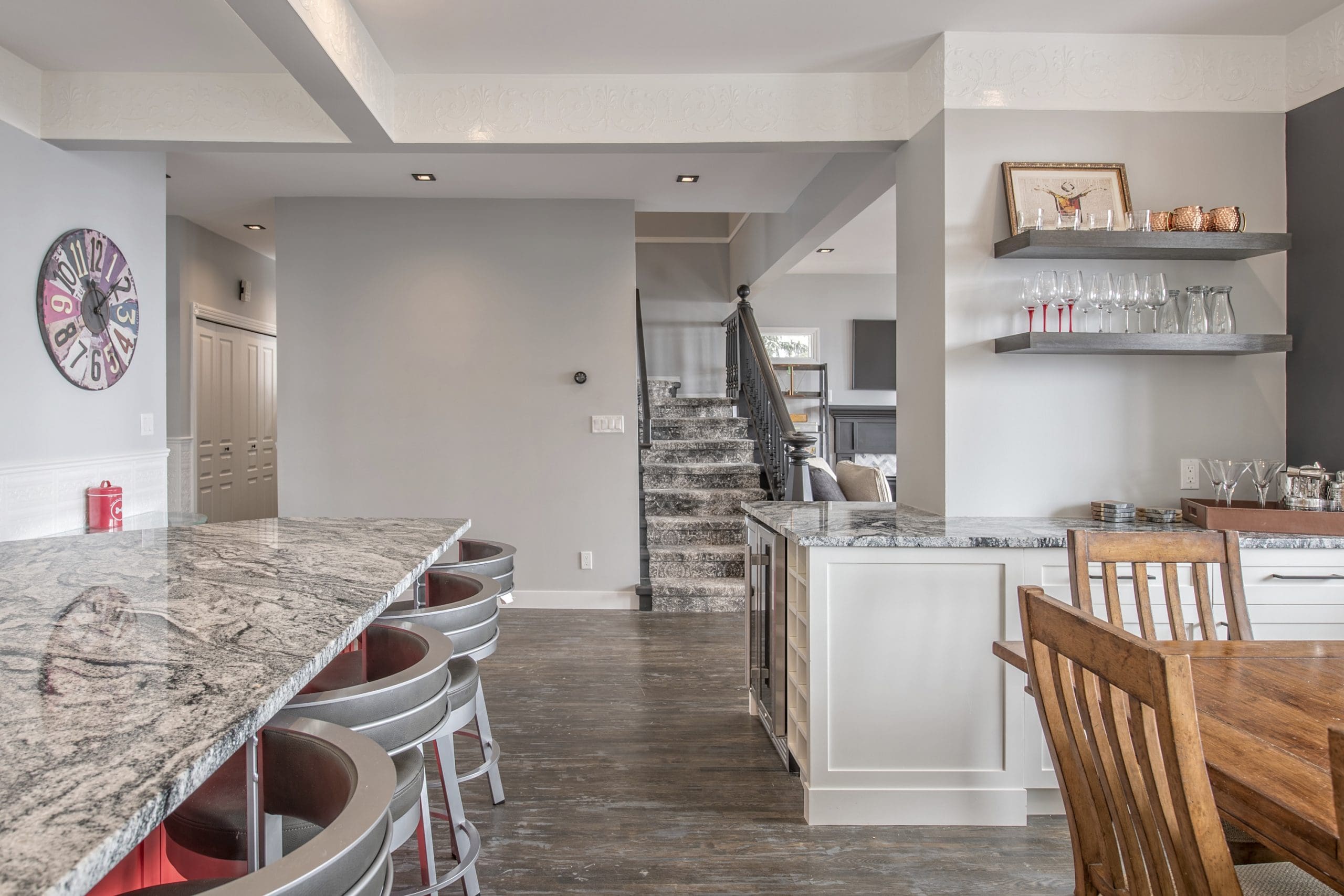 As you enter, you’ll be greeted by a generous foyer equipped with storage for your gear and convenient access to your personal ski locker just outside. Stepping into the main living area, you are welcomed by the breathtaking, unobstructed views of the Monashee Mountains. The upgraded kitchen features a massive island, two ovens, and everything you need to cook for your friends and family, while the adjacent expandable dining room table comfortably seats everyone (extra foldable chairs are in the closet). A separate bar area with a wine fridge and coffee bar adds to the allure. Cozy up in the living room by the gas fireplace, or step outside and enjoy the scenery from the large deck complete with a gas BBQ and private hot tub. This main floor offers an ideal setting to unwind with your favorite beverage while soaking in the breathtaking mountain vistas.
