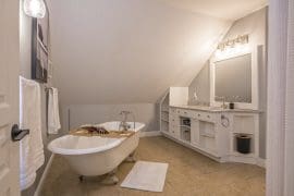Bedroom Level Bathroom: Full Bathroom with separate standup shower, clawfoot tub and sink as well as sink and toilet