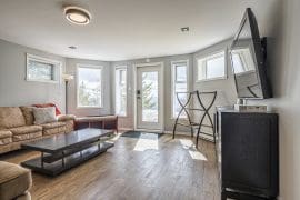 If you have friends or family that need a little extra space or grandparents that need a bit of quiet time, the suite in Bookend Mountain Retreat is the perfect spot for them. From the main level, head down the stairs to the spacious 2-bedroom, 1-bathroom suite. You have your own living room, dining area and kitchen! There is also a private hot tub just on the deck off the living room, rest your body and soak in those Monashee Mountain views at the end of the day!
