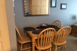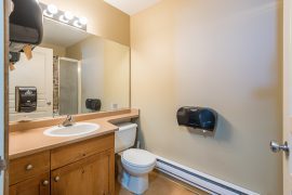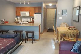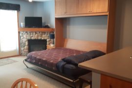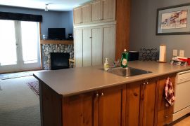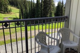 This cozy studio suite is located on the 2nd floor of the Foxglove Building in Creekside. The bonus about this condo is your front door has ground floor access from the parking lot (no stairs to climb) but you’re actually on the 2nd level at the back, for privacy and great views of the Silver Queen Area. This is an absolutely perfect location to access the Silver Queen Chair, the XC trails, Tube Town and the Pond. You can even watch your kids play in the snow right from the balcony!