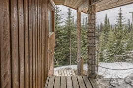 From the parking lot, head down the stairs to your suite. But first, take in the views! You’ll have to make sure you carve out some time to relax on the deck with your cup of coffee or glass of wine and take in the sounds and scents of the mountain.