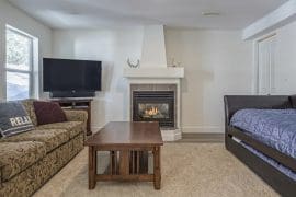This is an absolutely perfect suite for your Silver Star vacation. Eldorado Suite is a bright one bedroom plus a private den that has sliding doors. The den is super cozy with a gas fireplace and TV to hang out in at the end of the day. The den also has a day bed, single trundle, and pullout couch – perfect for all the kids!