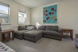 From here, head up stairs to the other 3 bedrooms, 2 bathrooms, and a loft area with a TV and sectional. It’s the best spot for kids to hang out and watch movies while everyone else relaxes downstairs.
