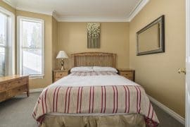 This house is on two levels and the main living area is accessed right from the front door and even a bedroom on the main level – perfect location for anyone that wants to be close to all the fun. Eldorado Upper has a large living room with gas fireplace, dining room with views of the Monashees, and a large dining table that seats 10. The fully equipped kitchen opens up to the dining area – perfect for visiting and cooking together after a day full of activities. Just off the dining room, you’ll find a large deck with a BBQ and the hot tub.