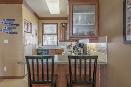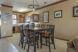 Grandview Stollcation is a large, 900 square foot condo with high ceilings and an open concept living area. There are two bedrooms and two bathrooms – enough space for the entire family (or friends). At the end of the day, eat dinner at the large dining table that seats 8 and then cozy up in the living room and watch a movie or just simply enjoy the views.
