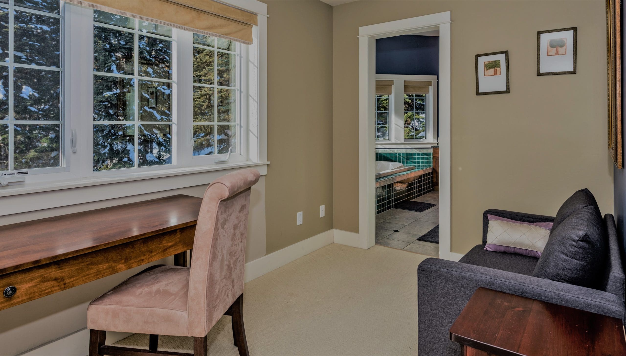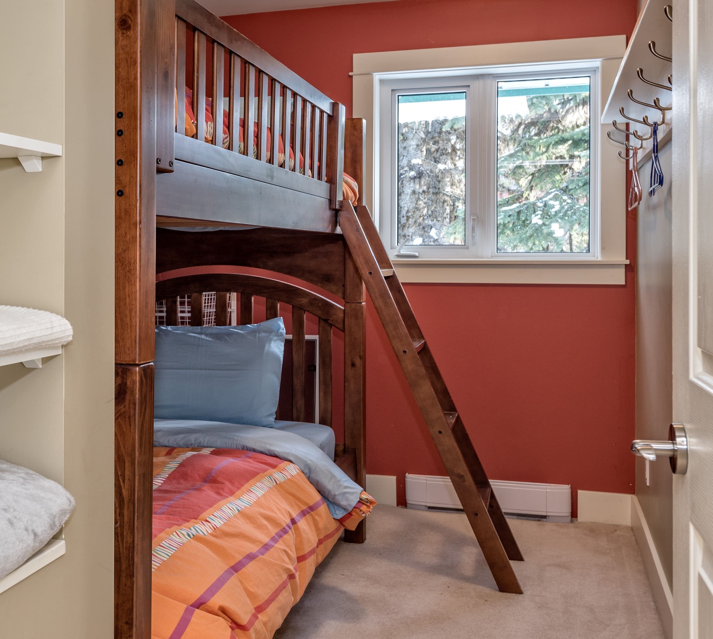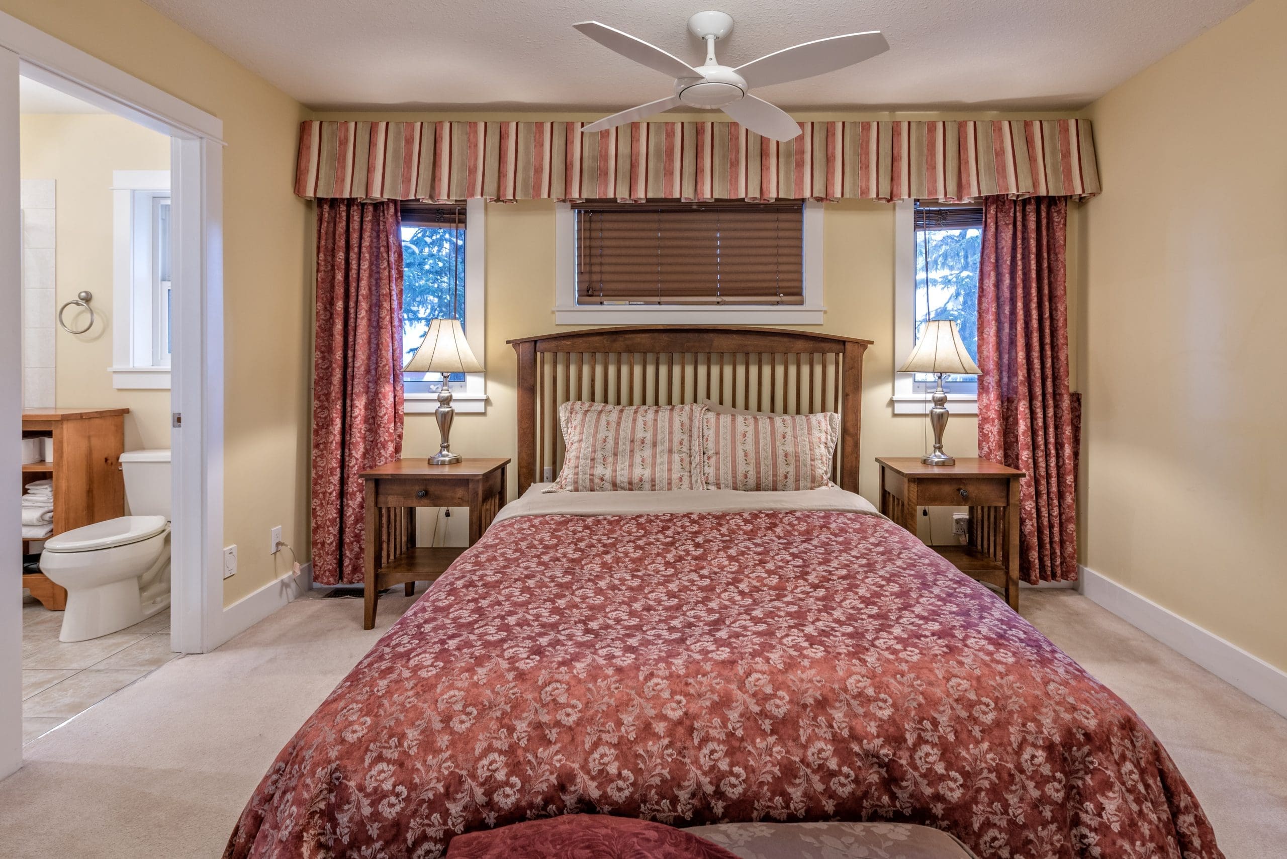 The Golden Columbine is the main floor suite with two new queen beds. A full bathroom on this floor makes this bedroom the ideal choice for any guests who prefer to not climb stairs to the second floor bedroom level.