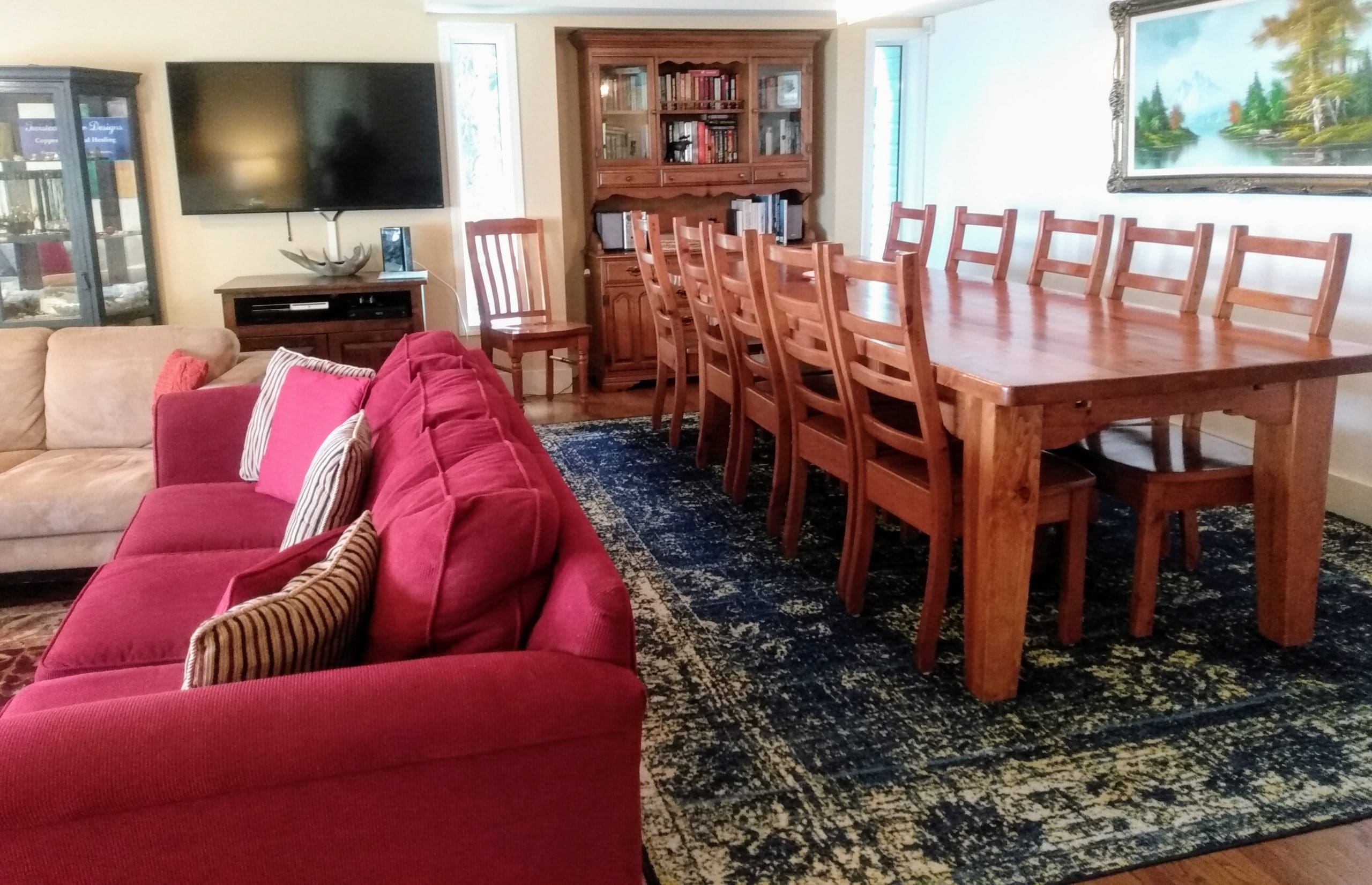 Enviable flat driveway with only three entrance stairs to the main floor which features a huge upgraded kitchen with all new appliances and a sitting area with awesome mountain views from the sofa area. Unlike many of the mountain homes which have a 3rd floor kitchen, Green Vacation Mountain Chalet makes it easy to come in and unload groceries.