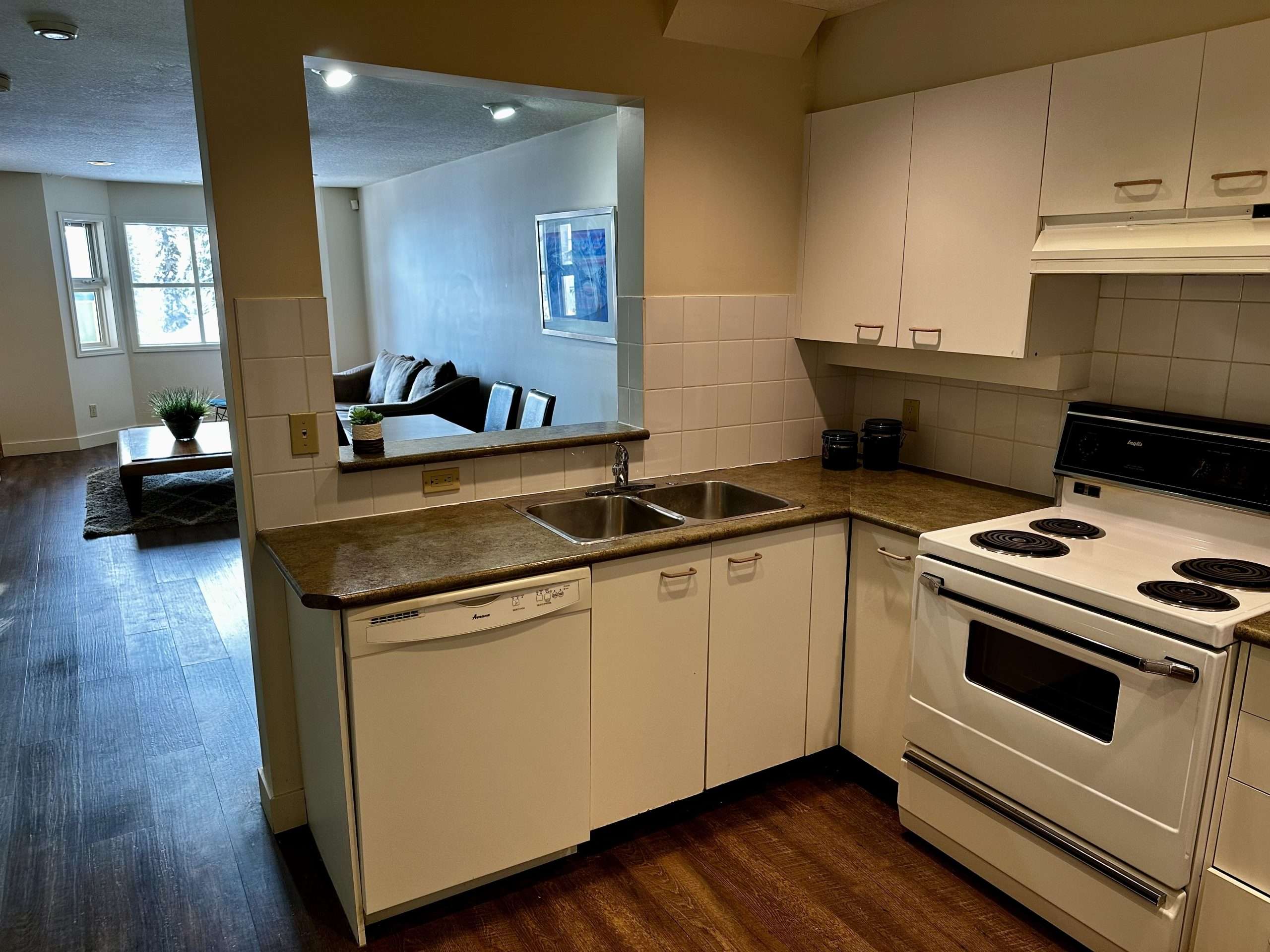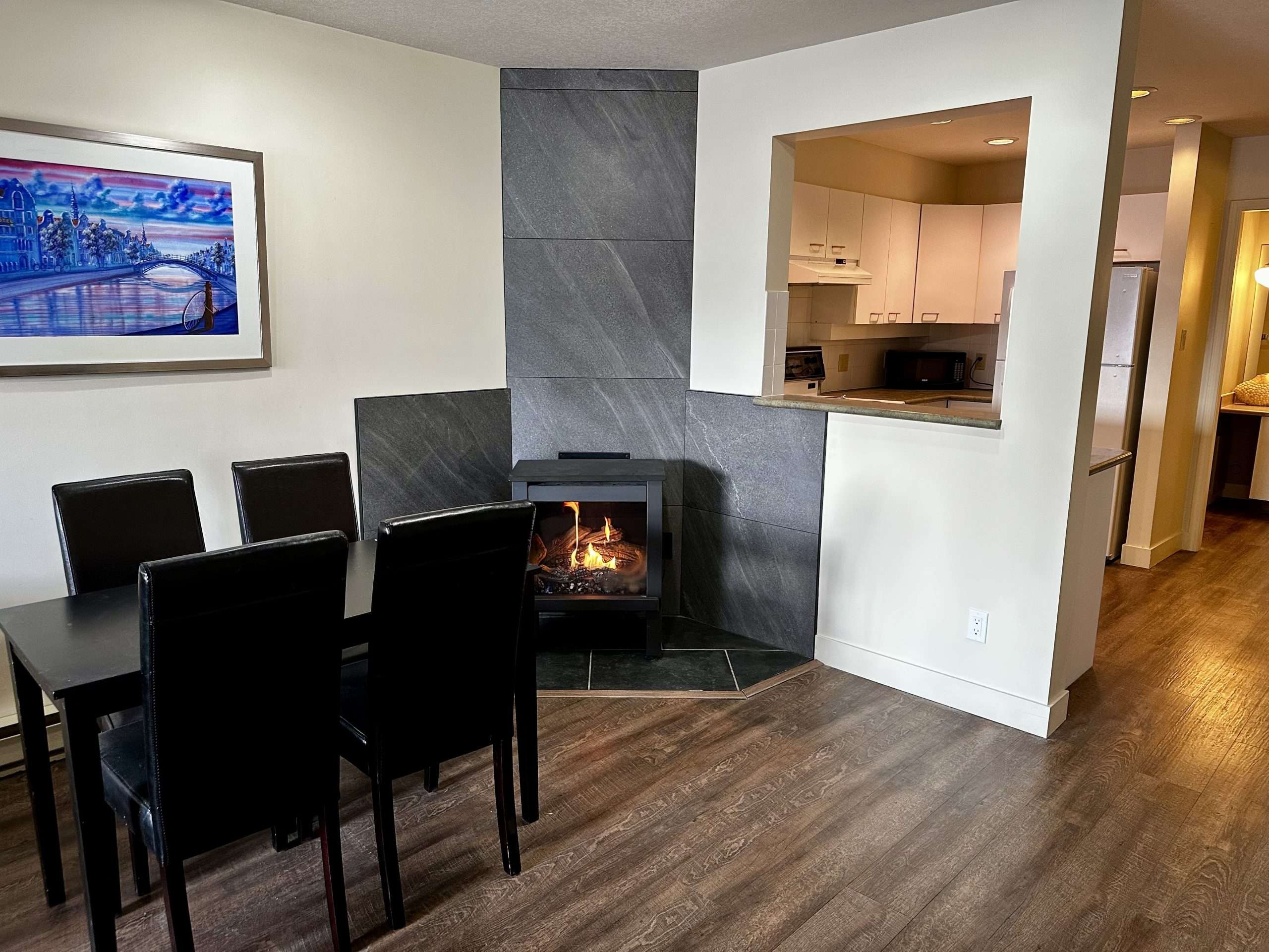 Henk’s Haven is a cozy, open suite with 2 bedrooms and 1.5 bathrooms. This private suite has a fully equipped kitchen, dining area with gas fireplace and living room with views of the mountain and beautiful sunrises. The master bedroom has a queen bed and powder room as an ensuite and the second bedroom has a queen bed and single/single bunk bed.