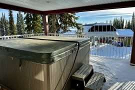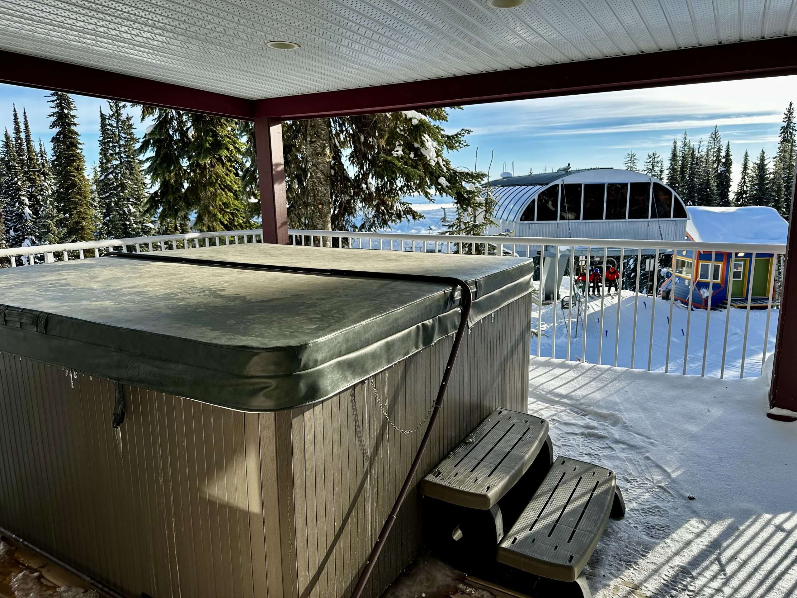 Your private hot tub sits up on a private deck overlooking the mountains and the Silver Woods chair. The hot tub is open for the winter and summer season, and closed for the shoulder seasons.