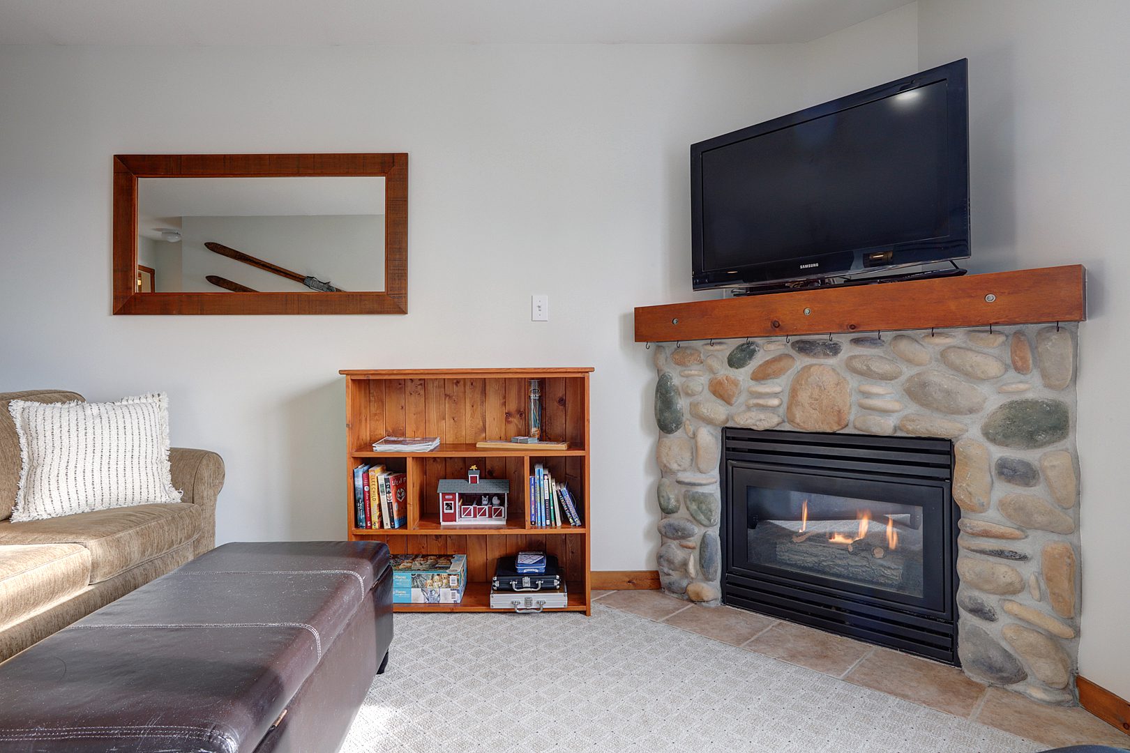 BONUS to our guests staying at this condo: Enjoy the extra-large common room on the ground floor. It features two sitting areas, a bookshelf full of books, a full kitchen, and a cozy gas fireplace. You can spread out and have a get together if you are traveling with other people, or with new friends you may make on your holiday.