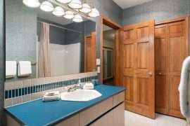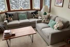 Attached to the main house through an internal door is a studio suite with an extra bedroom and bathroom that can be accessed through the garage. The studio suite is private from the main house and could be perfect for a smaller family joining you for some mountain adventures or for parents or grandparents that would like a little extra space. The studio suite has a queen bed, single bed in a cute loft as well as a full kitchen, living room, dining area and full bathroom. Through the garage, you can access the 2nd bedroom in the suite, a full bathroom and separate ski room and the second hot tub.