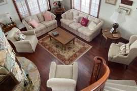 Walk in the front door and take in the classic Victorian style and open floor plan. The living room boasts high ceilings, stained glass and a unique circular floor to ceiling fireplace right in the middle of the living space. On one side of the fireplace, you have your traditional living room and on the other side there is a TV den, snug area and a dining room. The kitchen is fully stocked for that chef in your group and there is a BBQ on the deck just off the kitchen.