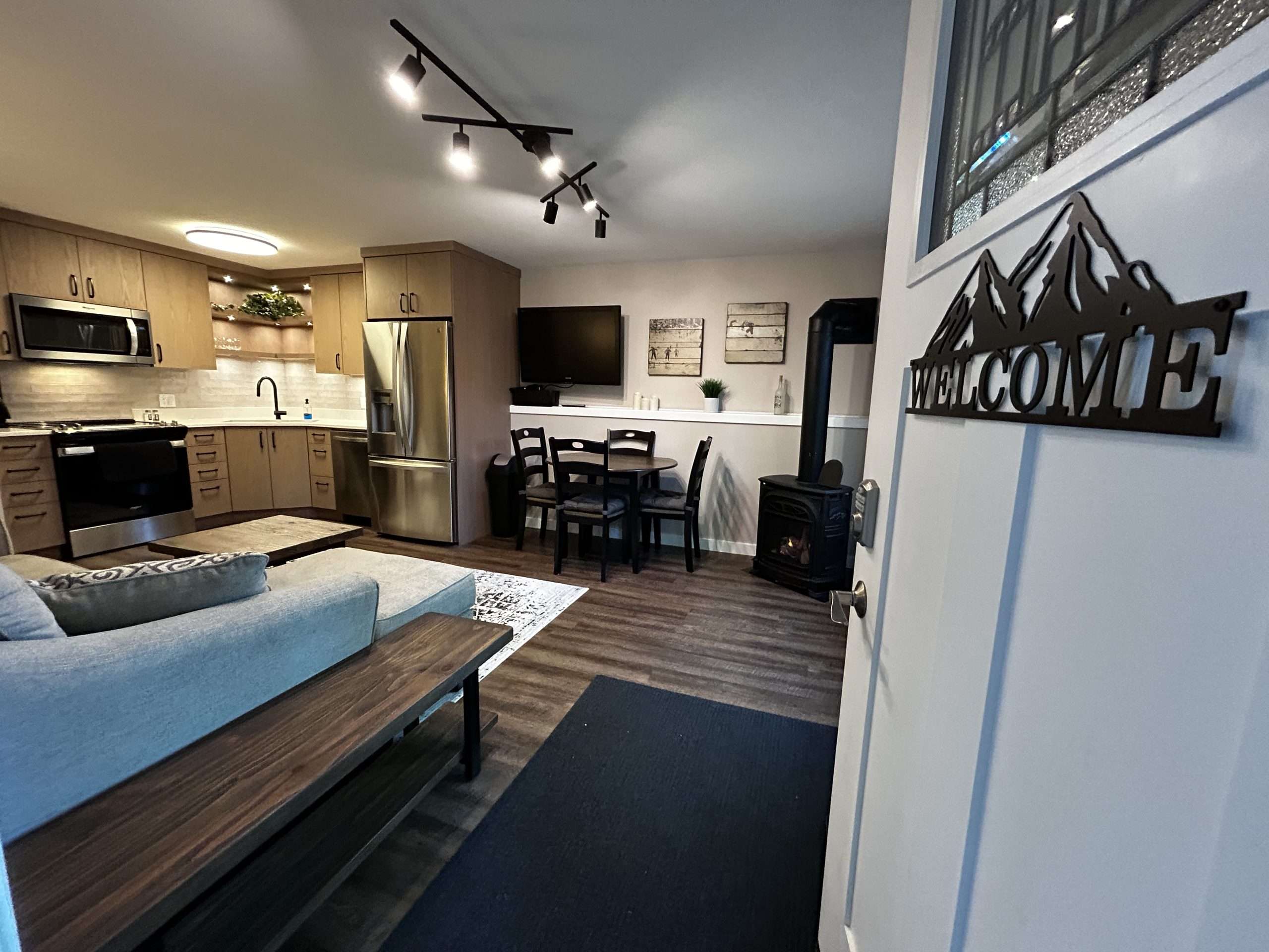 Walk in the front door to home away from home. Knoll Run Suite has a cozy living area with a gas fireplace, dining table that seats four and a fully stocked kitchen. Head down the hall to your bedroom with a king bed and full bathroom with standup shower.