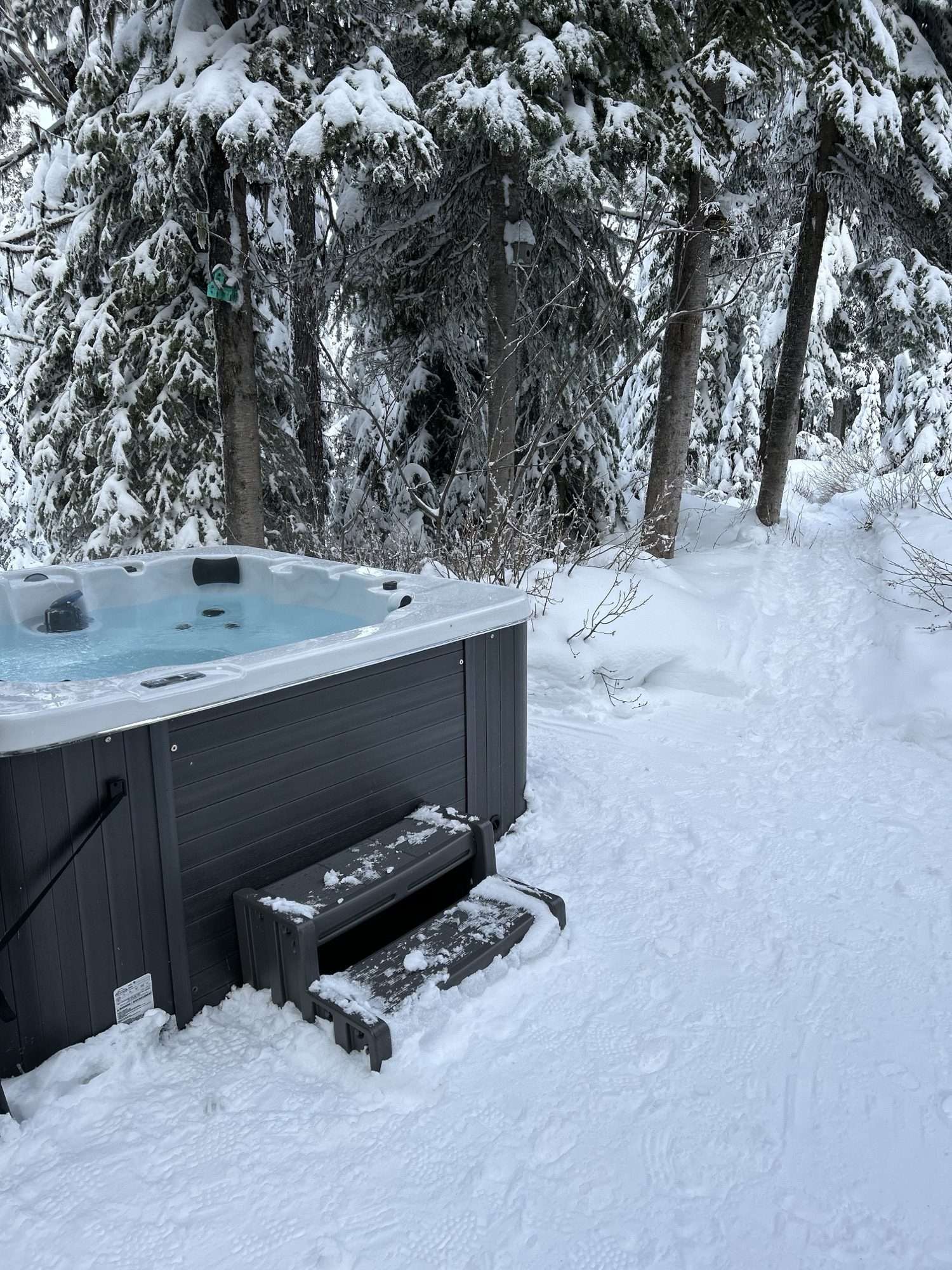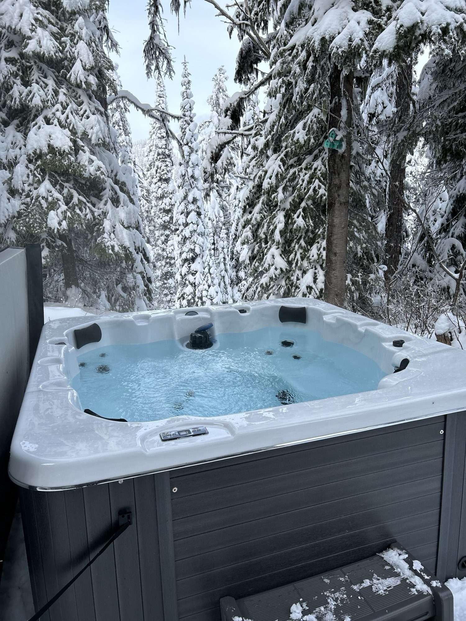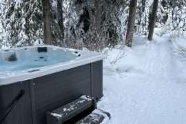 Just outside your front door is a BBQ, lockable ski rack, and private hot tub nestled in the trees.