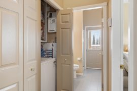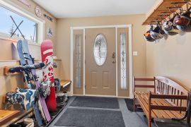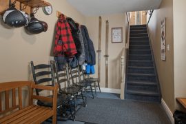 From the main level, head downstairs to your large, indoor and heated ski room where you can store all of your gear. From here, this is where you can also easily access the suite. Step out the back door, and the suite is just to your right. Enough privacy so if you have guests that need a little space, they can come and go as they please.