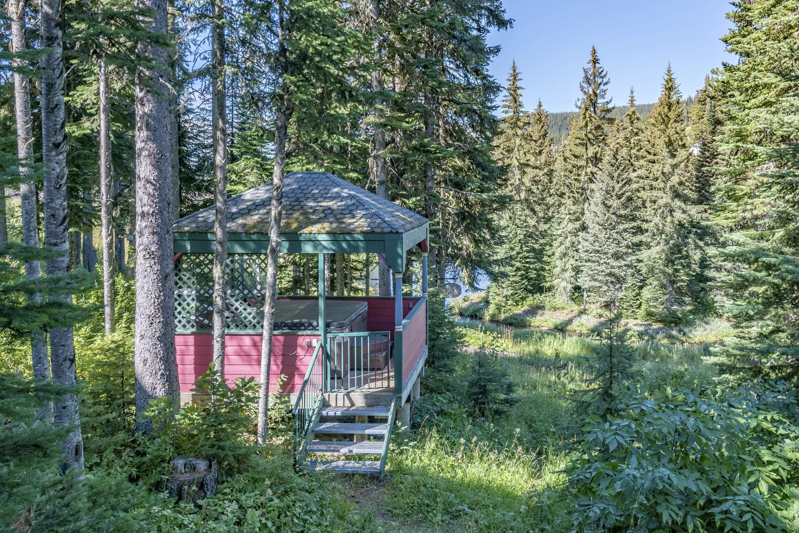 The shared hot tub is brand new and is nestled under a gazebo just behind the suite – this is shared with the upper unit but you will love it.