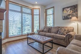 This modern 2 bedroom/2 bath condo is located in a fabulous spot. It backs on to the outdoor ice pond which is connected to the adventure park which includes the pond, tube town and the cafe too. You have quick access to the Silver Queen chair and a five minute walk to the village.
