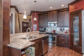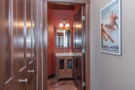 Also on this level is the boot room with space and hangers for all of your boots and clothes. Just outside of the boot room door is another covered patio and a ski locker. You also have access to the single garage to store extra ski gear or bikes.