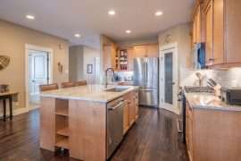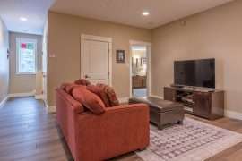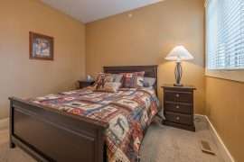 Walk in the front door to your main living area. This floor has a large and updated kitchen, dining room and living room with a beautiful gas fireplace. On the main floor, you’ll also find a rare bonus of having one of the bedrooms with a queen bed and full bathroom. This is perfect for someone with mobility issues as they can fully enjoy all the action with family and friends.