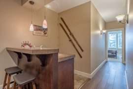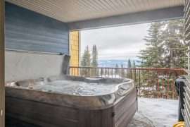 Just off the living room, you’ll find a large deck with BBQ and brand new hot tub. You’ll also find a large ski room right next to the front door. This is a very convenient spot to unload your gear upon arrival and ideal to get your skis on and head out for the day.