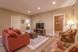 Head downstairs to the den with a wet bar. This den is the perfect spot to wind down at the end of the day. Kids can use it to play and watch TV, while their parents are upstairs, or everyone can gather downstairs enjoying a movie or watching the big game!