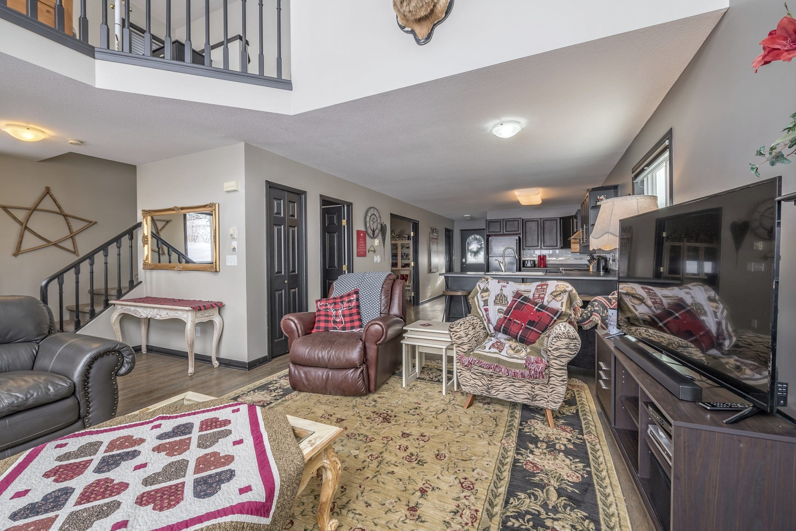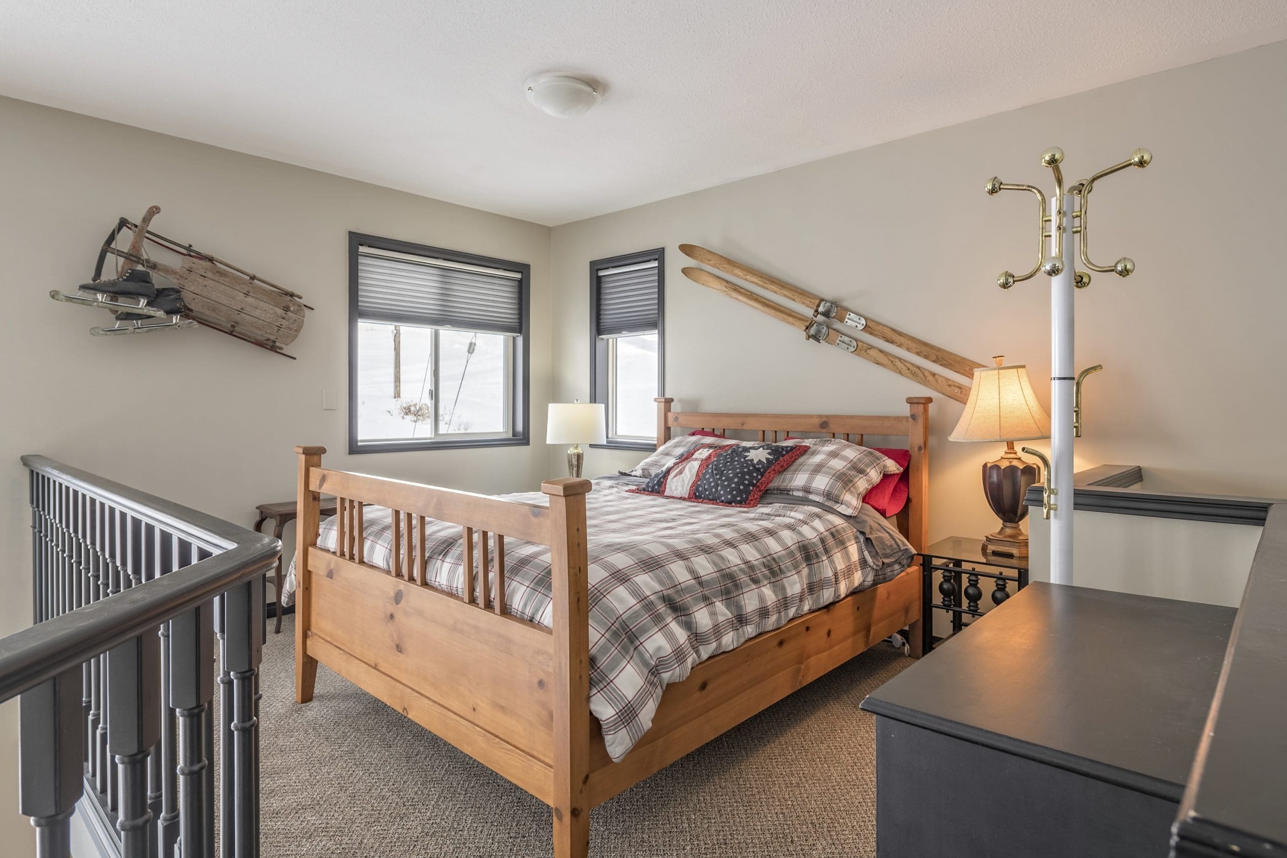 Head upstairs from here and this is where you will find the three bedrooms, two full bathrooms and the loft area. This open concept vacation home makes it so everyone can be together and enjoy some adventures on the mountain.