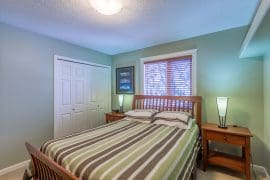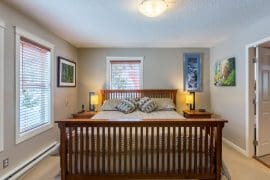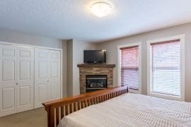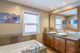 From here, head upstairs to the 3 bedrooms and 2 additional bathrooms. The large master bedroom has a king bed, tons of closet space, and large ensuite with a soaker tub and double shower.