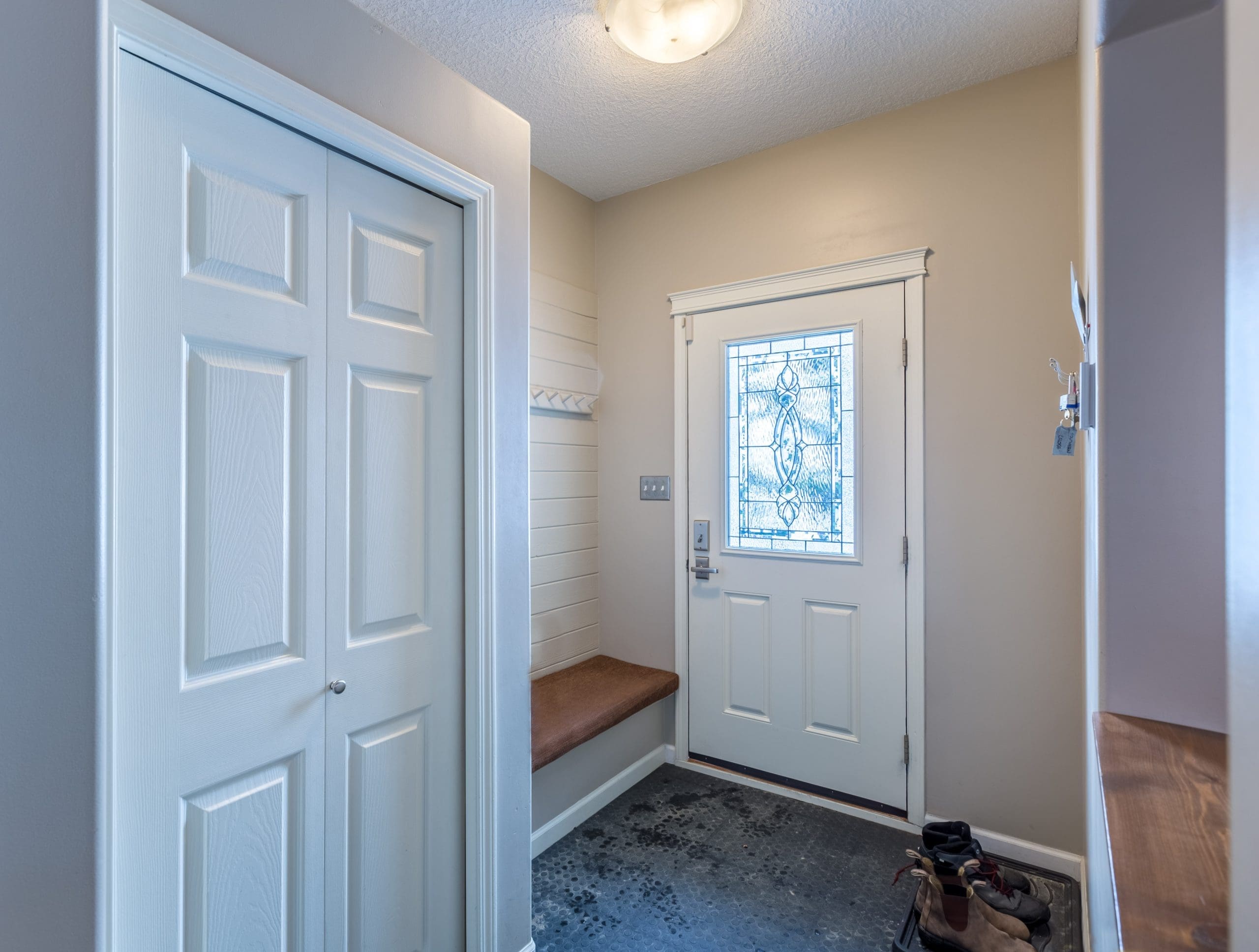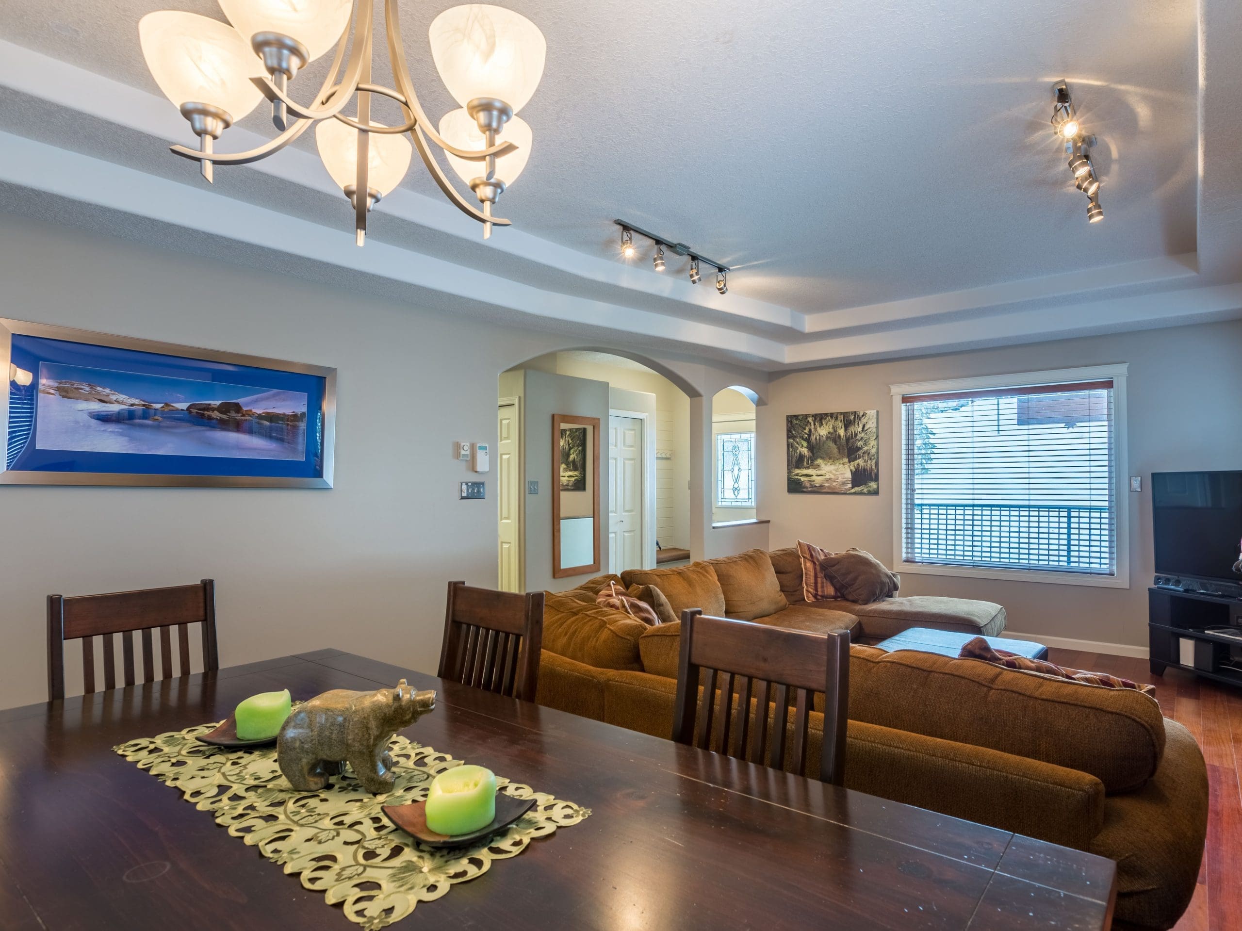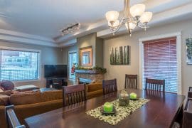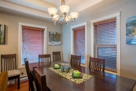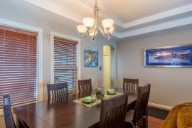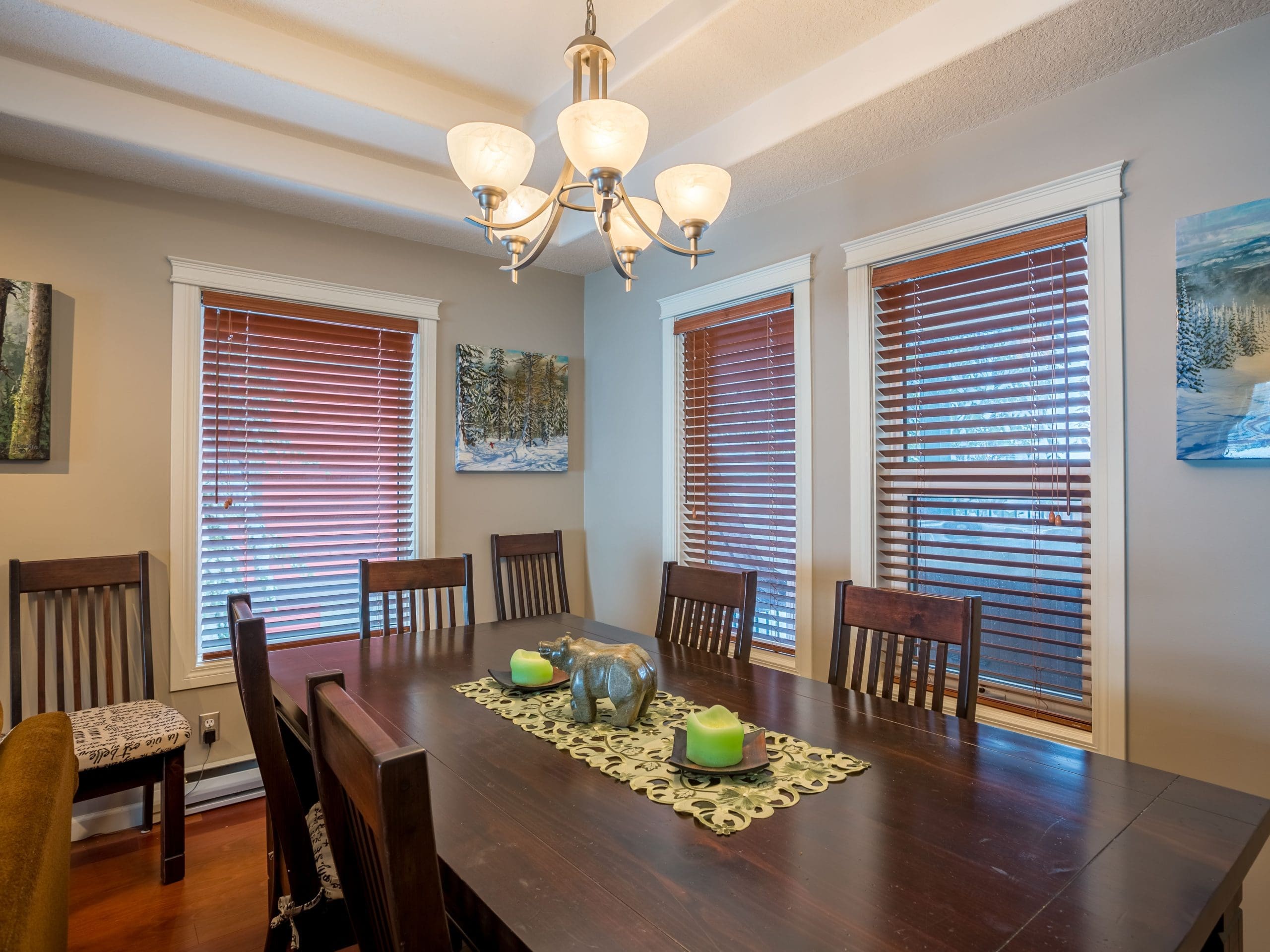 Walk in the front door to the main living area with large eat-in kitchen, dining room, cozy living room with gas fireplace and full bathroom. The dining room has a large table to comfortably seat 8.