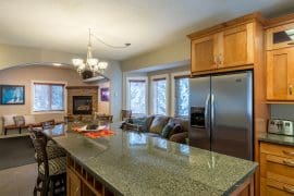 Off the kitchen is a nice den with another gas fireplace to play games, get ready for skiing, or just hang out and visit after a great day on the mountain.