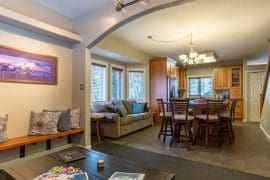 Sophie’s Run is a beautiful house, nestled in the trees right on the skiway. This 3 bedroom, 3 bathroom house is perfect for your family vacation. Sophie’s Run sleeps 8 and has enough space for everyone!