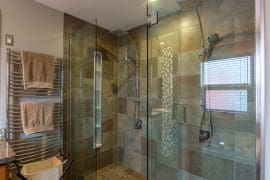 All bathrooms have a bit of luxury with heated floors and heated towel racks.