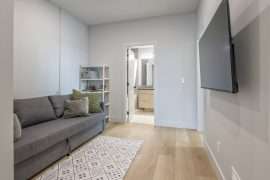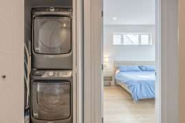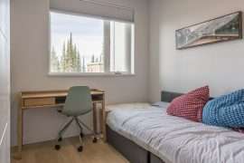 The second floor of each side, you will find all four bedrooms, laundry and alcove with TV and pullout couch – it’s the perfect hangout for the kids! The large master bedroom on each side has large windows with a view, walk-through closet and ensuites with a standup shower. The other three bedrooms on this level share a full bathroom. If you need to work while you’re on vacation or the kids need to get some school work done, the fourth bedroom doubles as an office with a desk and single day bed.