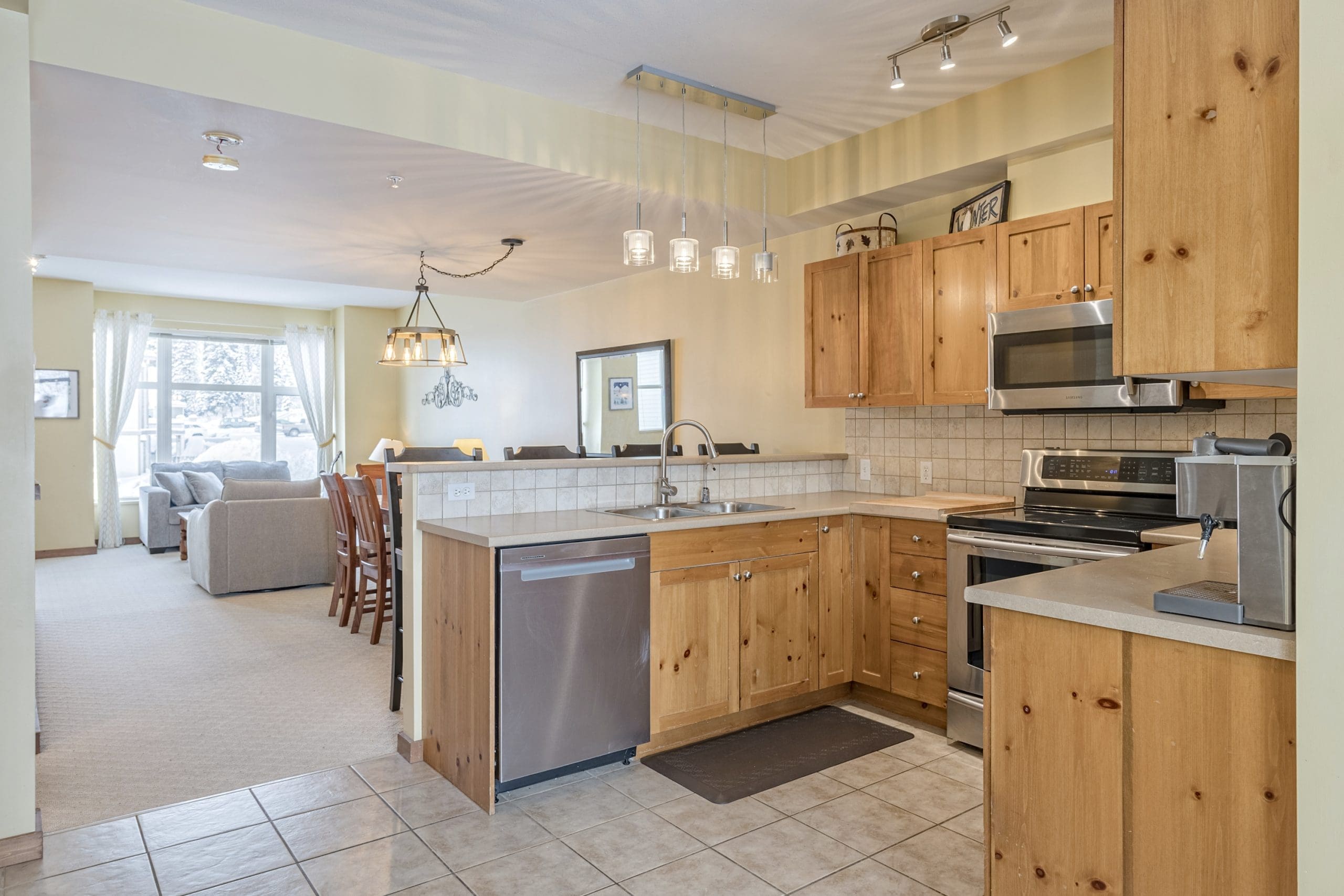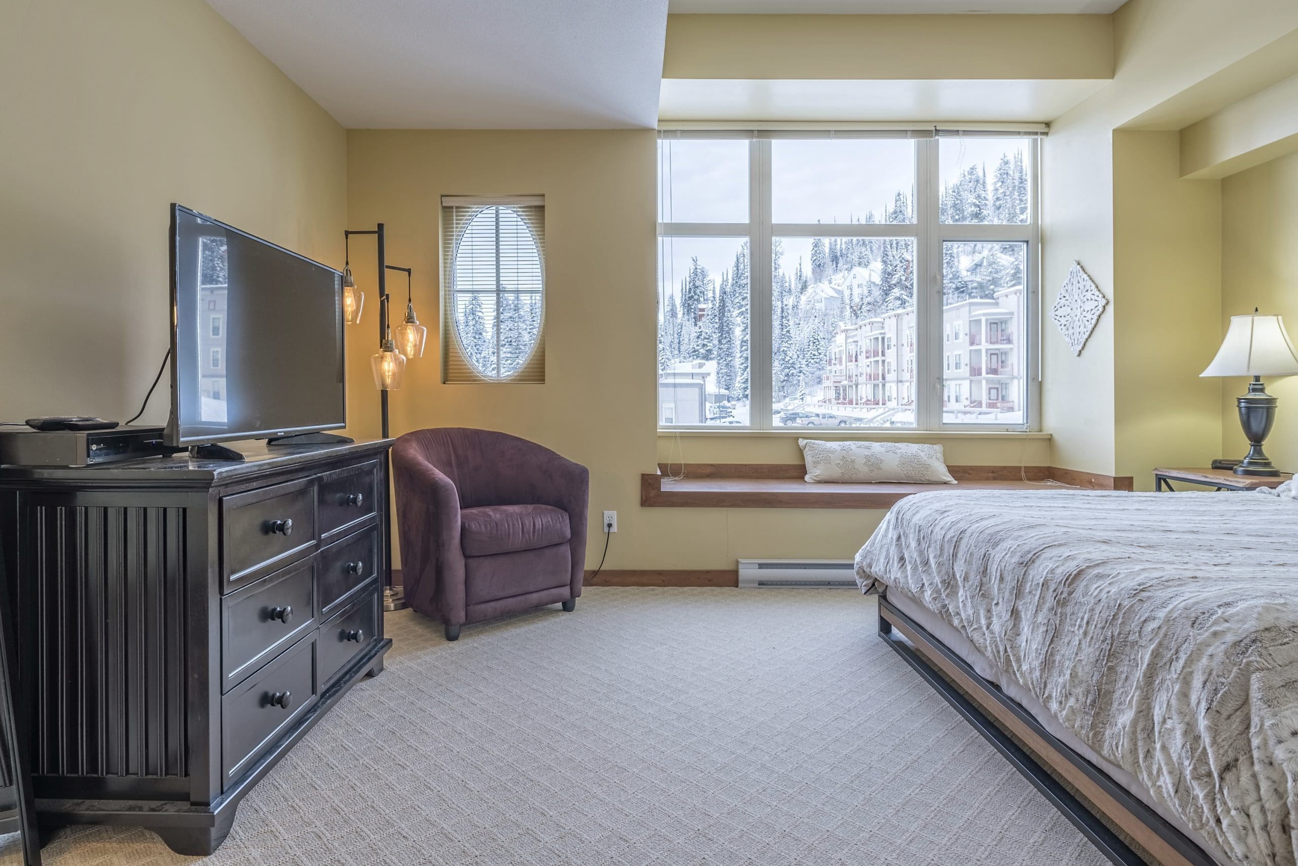 Starview is a deluxe, three story townhouse where everyone can spread out. The open concept main living area on the second floor has large windows so you can take in the mountain views. The kitchen is fully stocked with everything you need to cook meals for everyone. The ski room opens up to the back deck where you have easy access to the skiway which heads right to the Silver Queen chair and this is also where you will find your private hot tub.