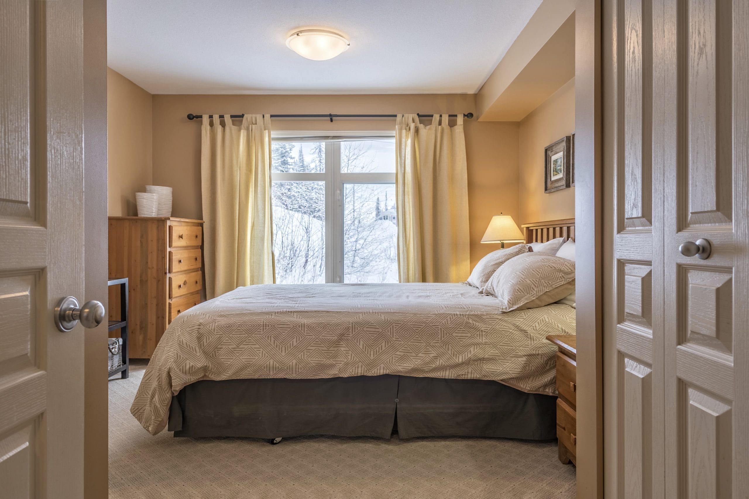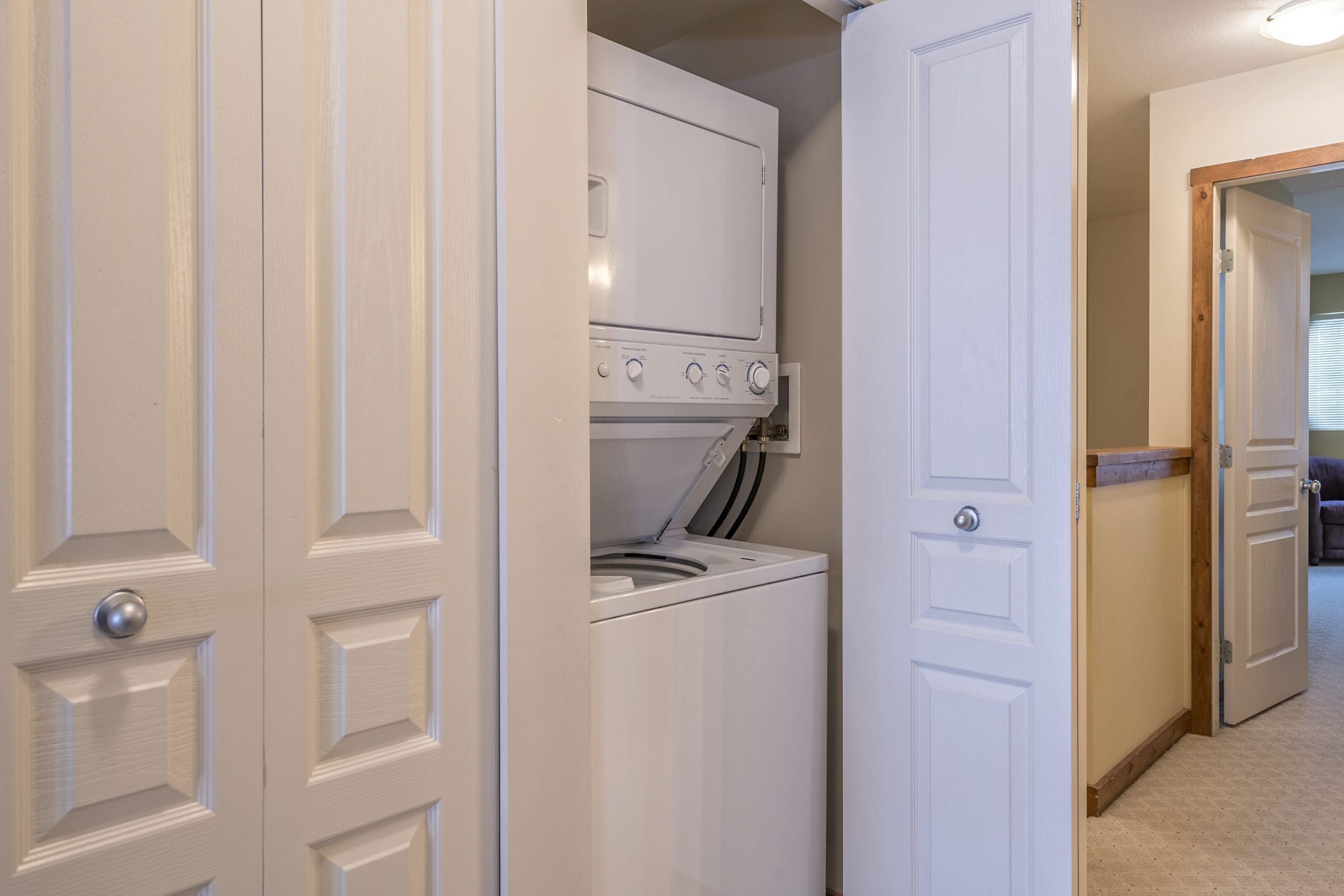 From the main living area, head upstairs where you will find all of the bedrooms. The large master bedroom has huge windows with incredible views, a king sized bed, TV and ensuite. Just down the hall, you’ll find the two other bedrooms and full bathroom. This is also where you will find the laundry closet.