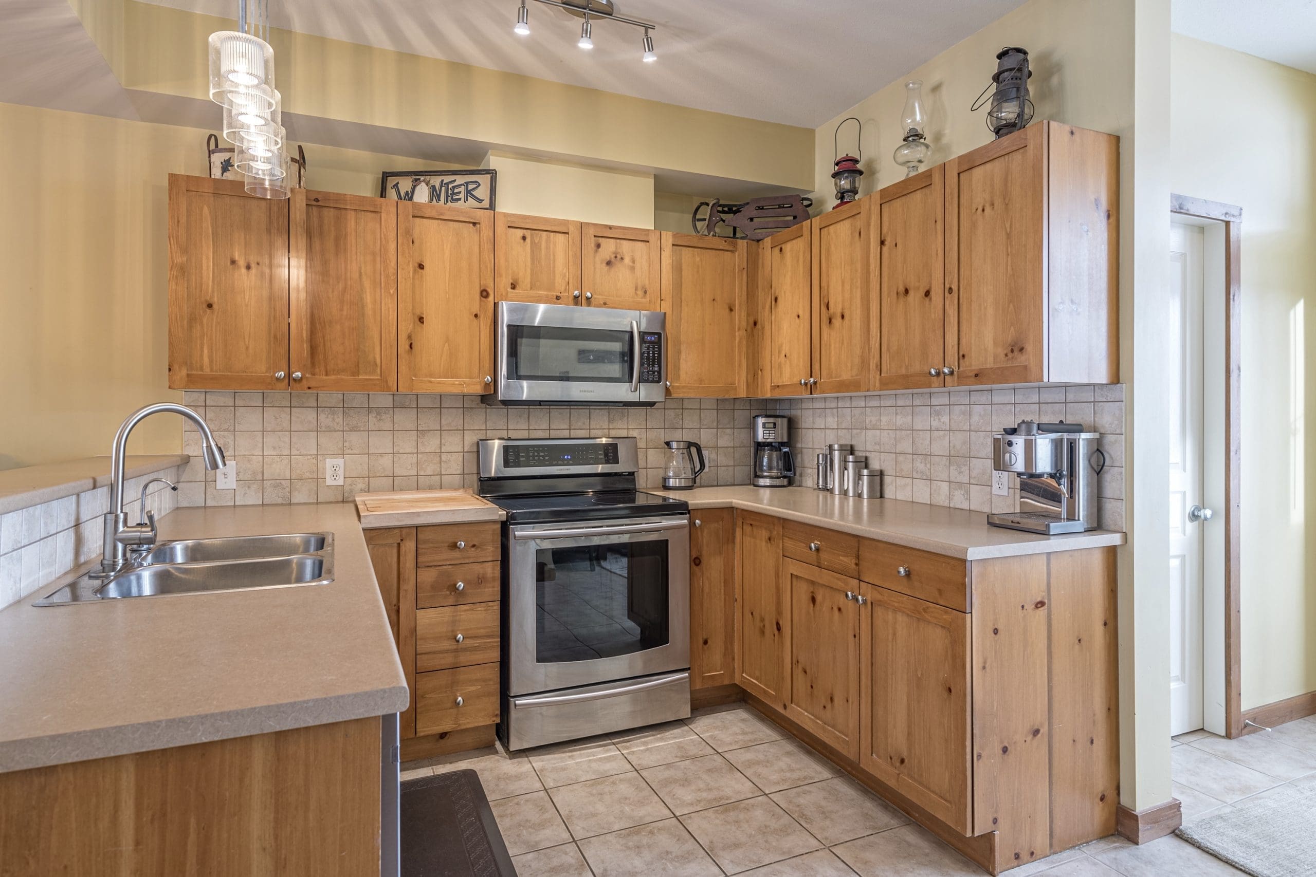 Need space for your gear? The large, tandem garage has ski racks for all your skis and you can even fit bikes in here during the summer season.