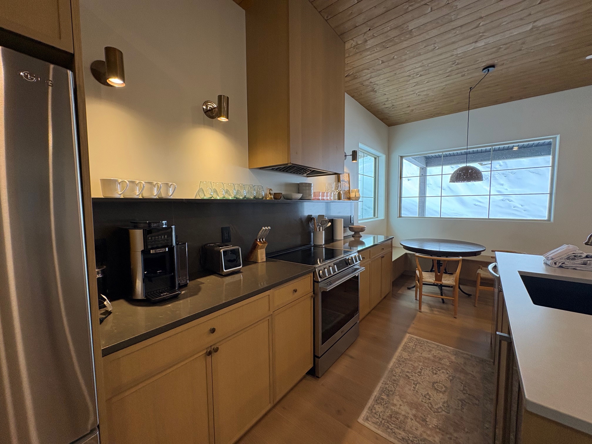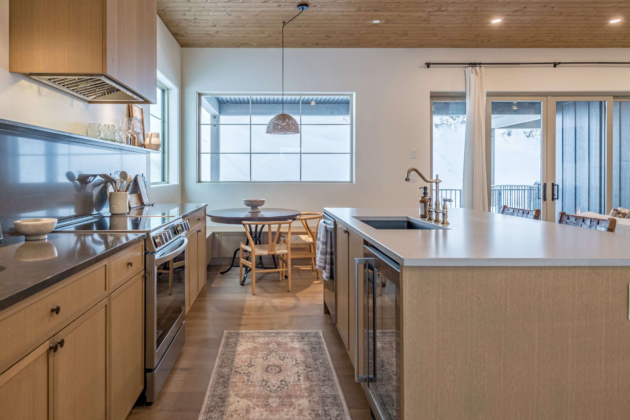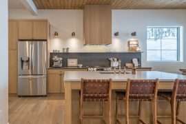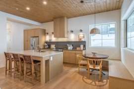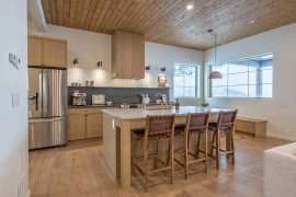 Once in the front door, you can head upstairs to the main living area. This is where you will find the open kitchen with high-end appliances and everything you need for your stay at your home away from home. STN Pine Villa has a cozy living room where you can enjoy your coffee in front of the beautiful gas fireplace or end the day watching a movie with the family. The breakfast nook is the perfect spot to spend time with the family over meals right before or after you have your mountain adventures.