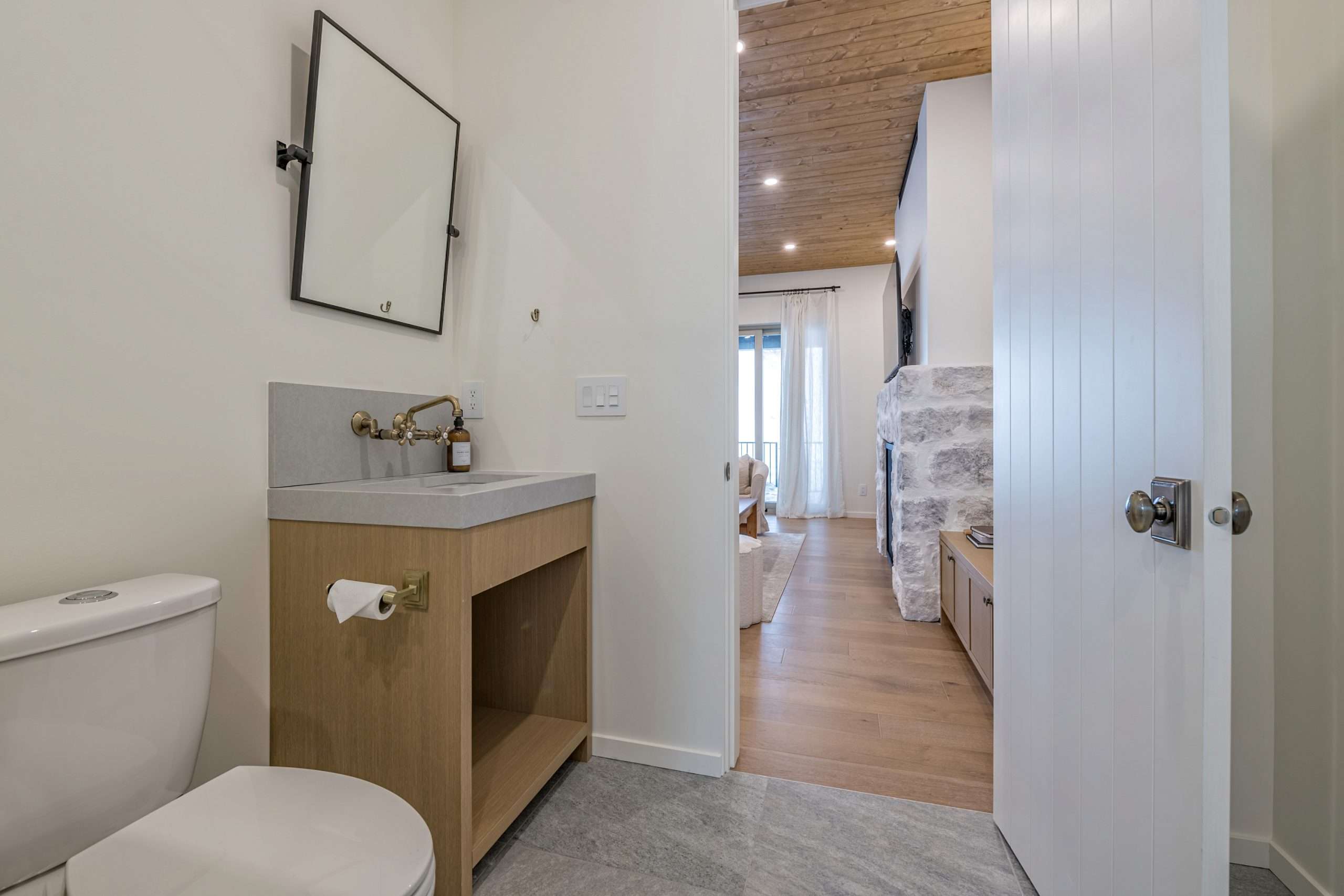 Head into the front door to the large entryway, from here you can go right to a large and open room where you will find a ping-pong table, foosball table, board games and more – perfect for adults and kids. There is a pullout touch and powder room on this level too, so could be an extra sleeping space for a guest.