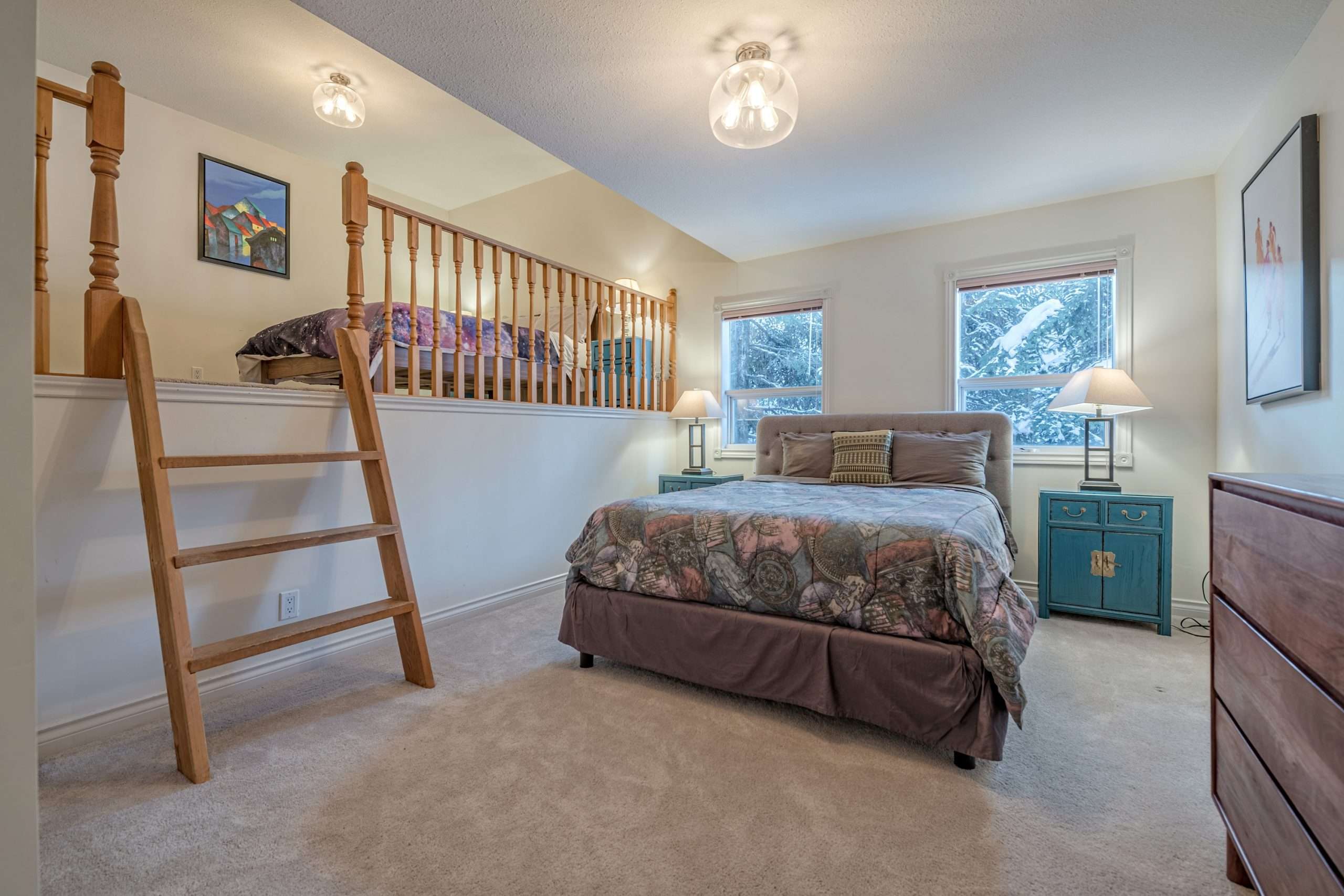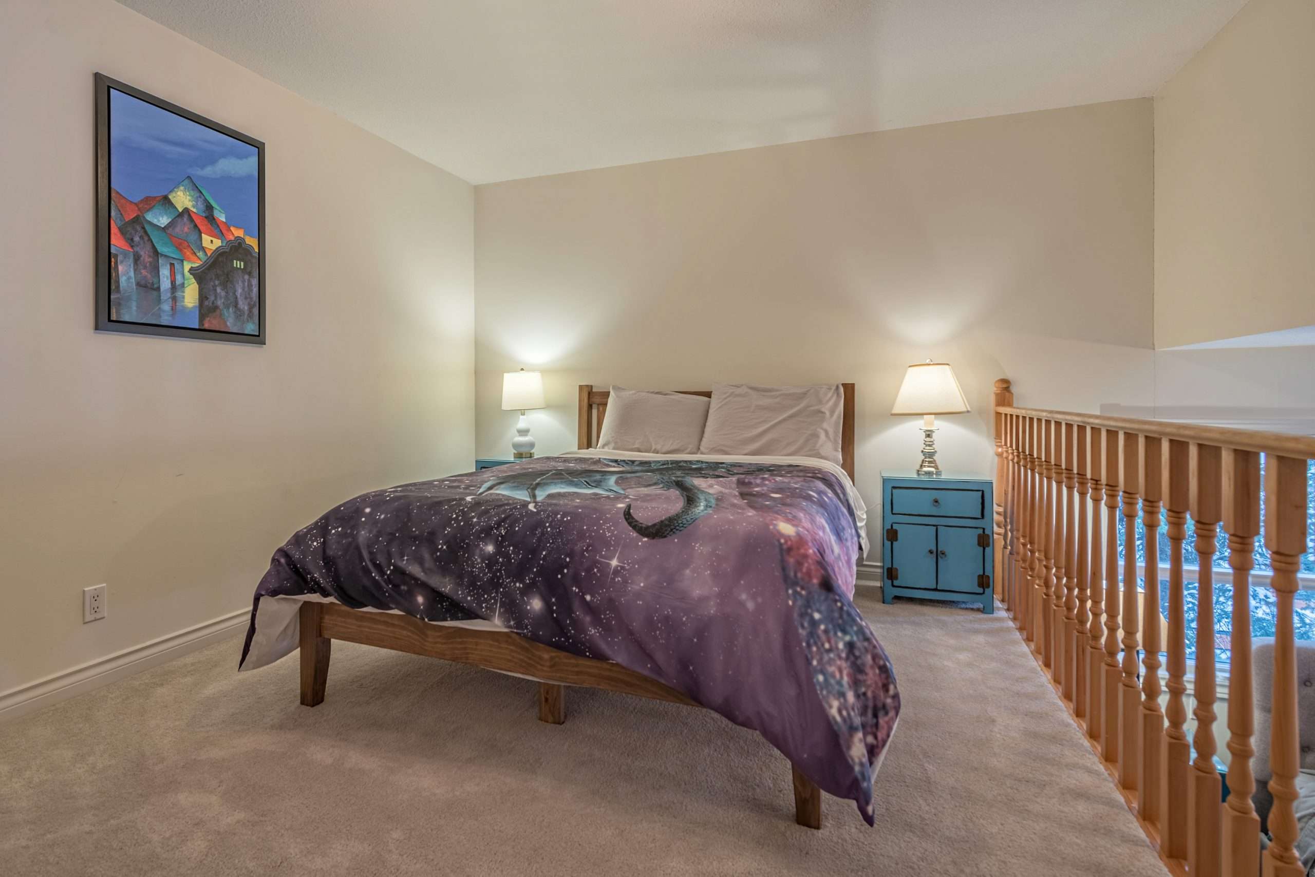 Bedroom #3 – extra large bedroom with two queen beds (sleeps 4). In the upper loft there is also a large closet that has been transformed into a kids play room – great for playing!