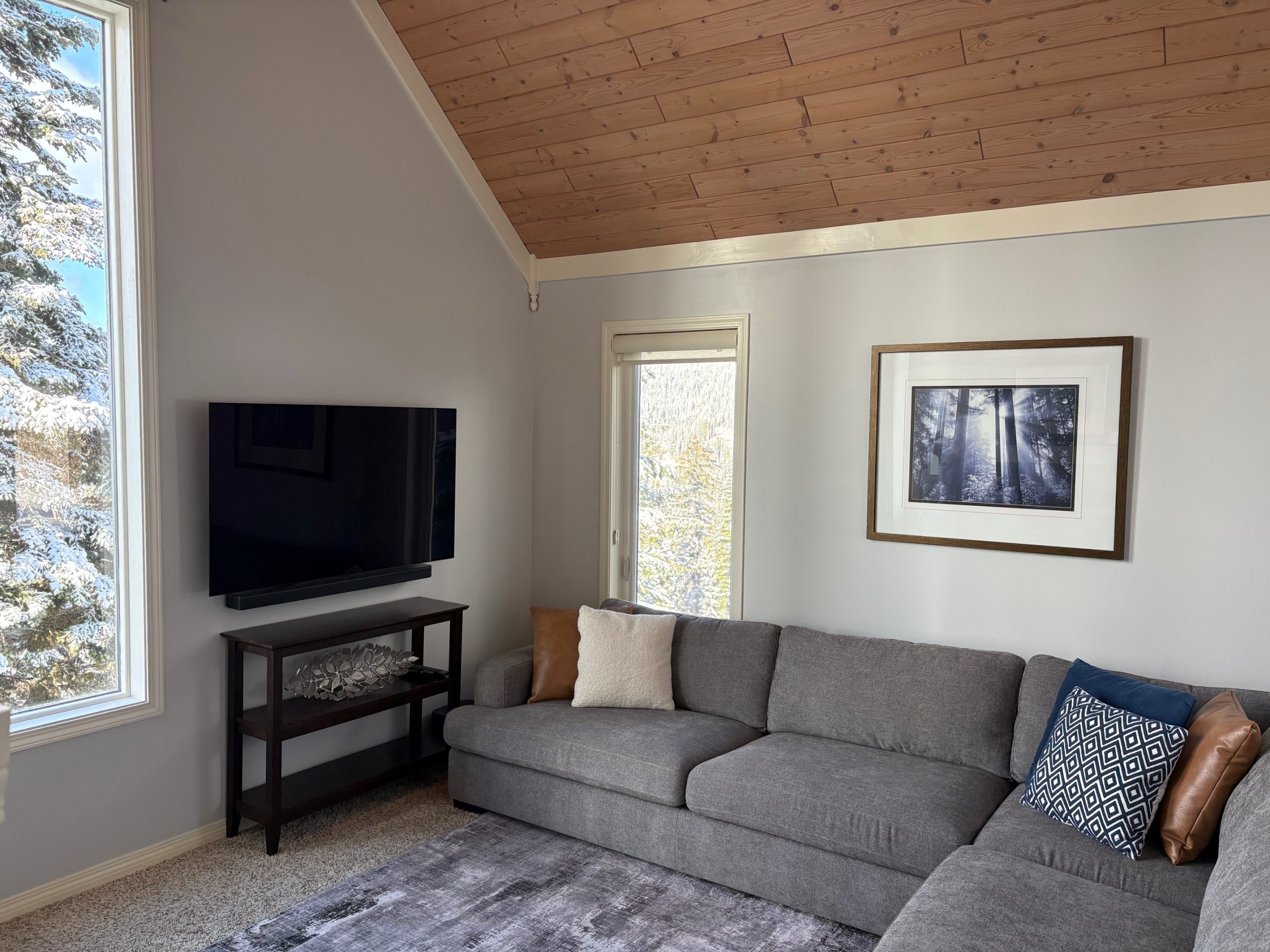 If you’re looking for the perfect place for a group of family and friends, stop here. Sunset Vista is set across two and a half stories and features a media room, games room and beautiful main living room with incredible mountain views. If you need space for everyone, it’s right here!