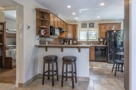 Tamarak Suite has an open living area has large windows that make the suite nice and bright. The cozy living room looks into the trees and the renovated kitchen has heated floors and everything you need to cook all your meals during your stay. There is also a dining room nook with a small dining table and extra chairs if needed.