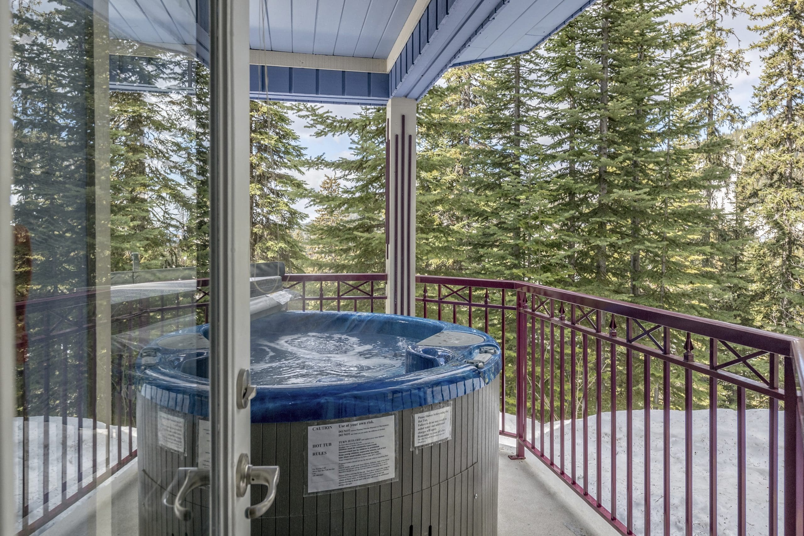 Tamarak Suite has a private hot tub on the deck just off the main living area. The private hot tub is open for the winter season only.