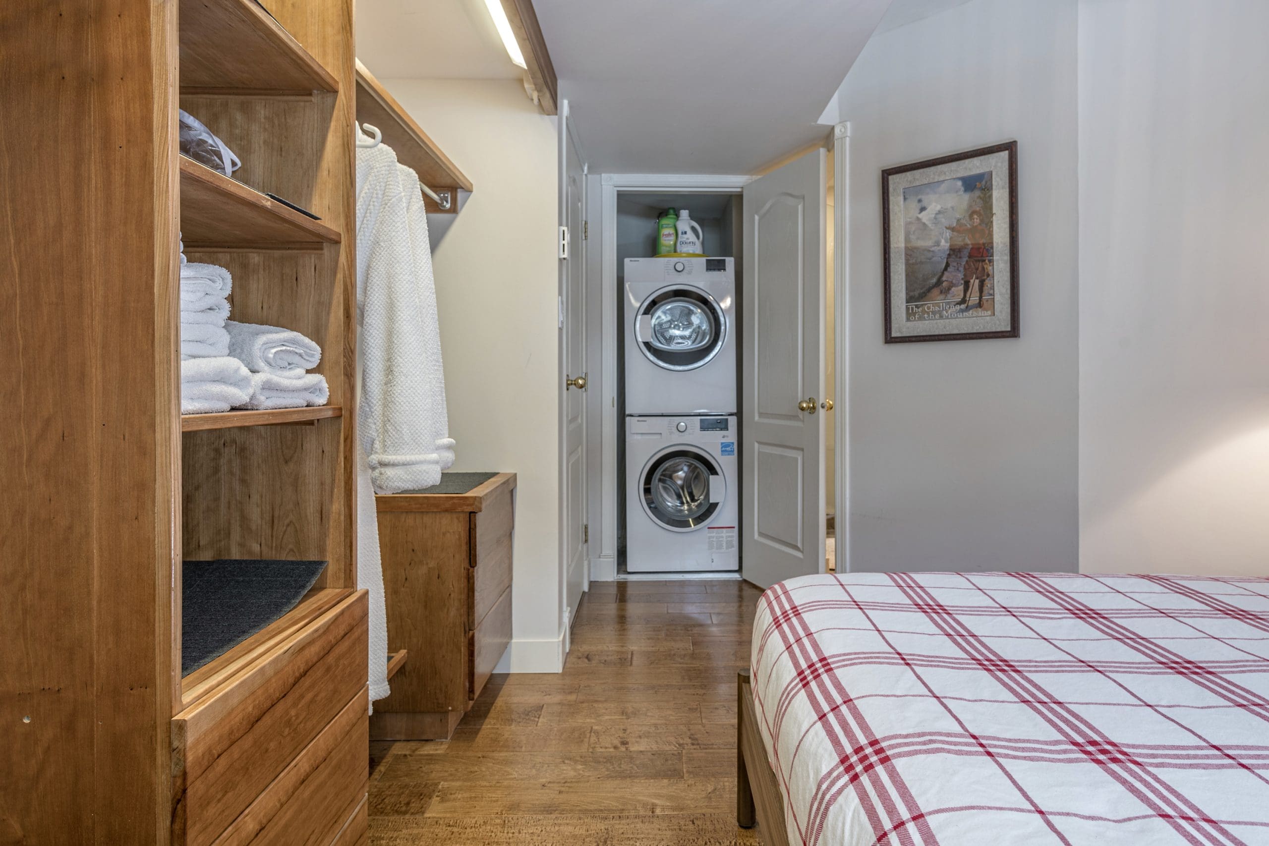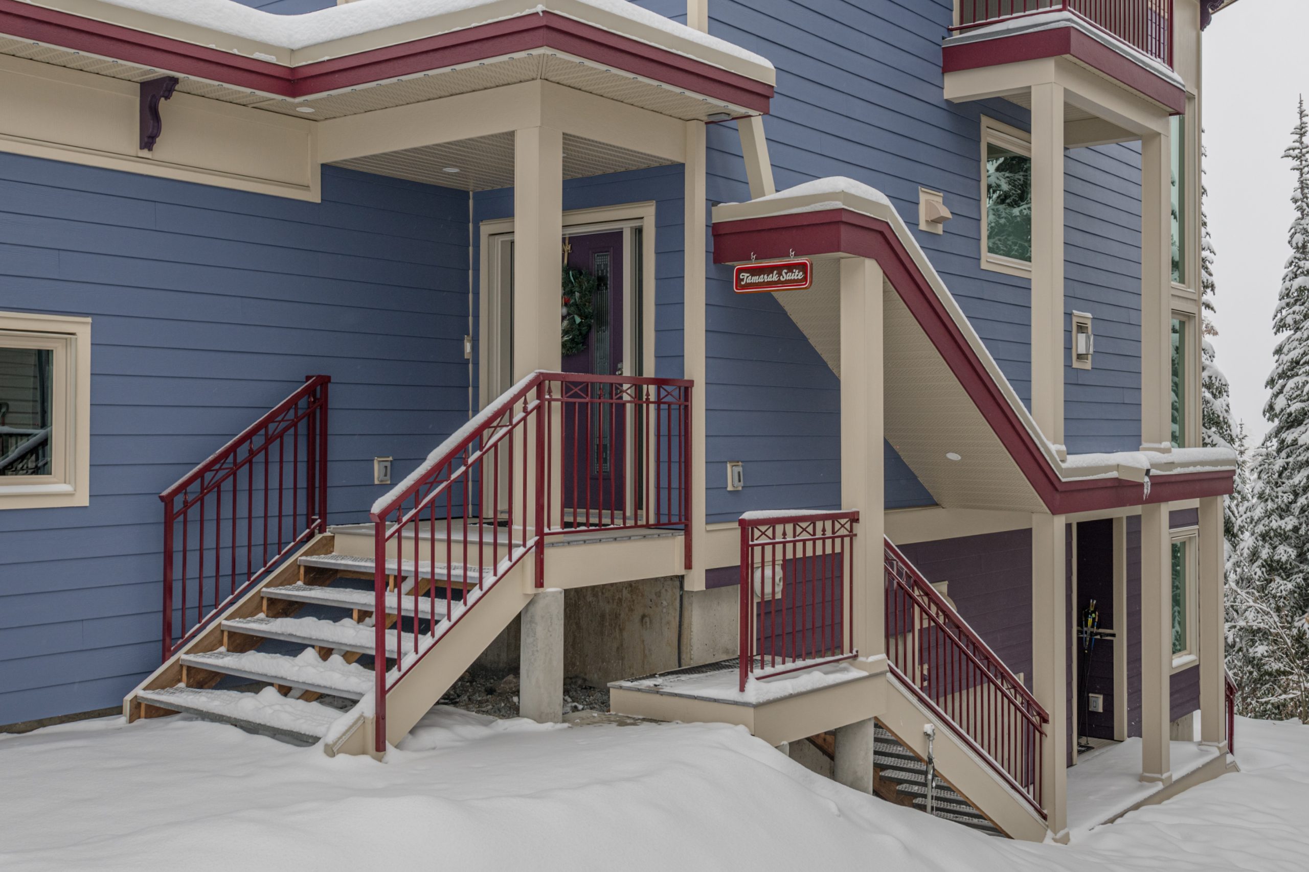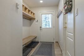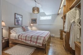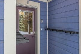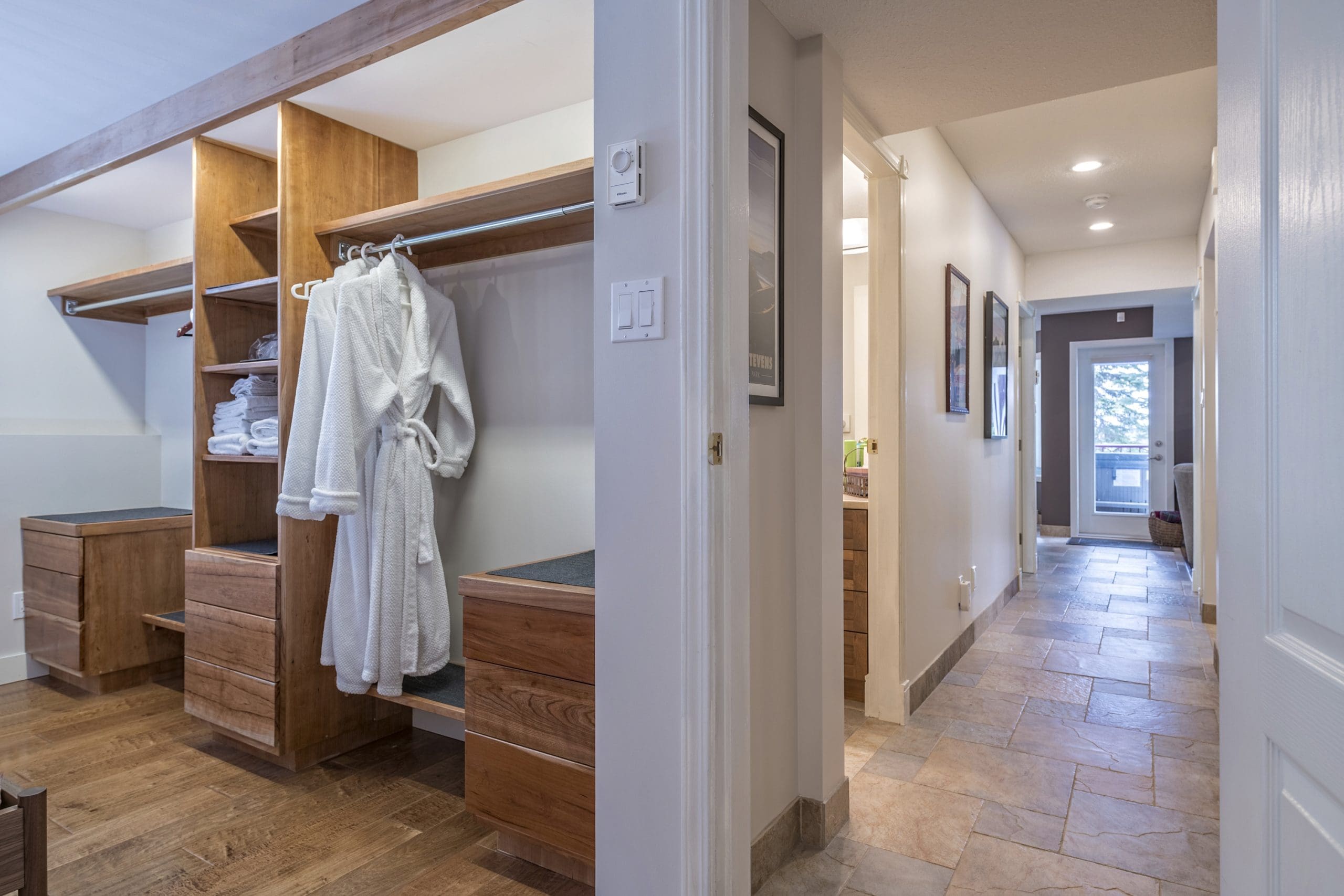 Access the suite through your private entrance at the side of the house. As you walk in, you have a nice entry way with a bench which has a heater underneath to warm up all your gear and lots of hooks above for jackets, pants and more. There is also a private storage room to store your skis, boots and anything else you may have. Want quick access to your skis and boards? Use the ski rack right outside your door!