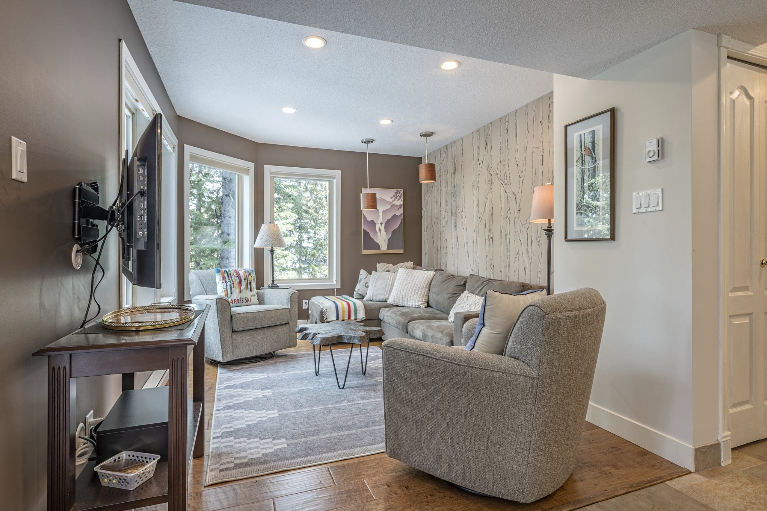 Tamarak Suite is a cozy and bright two bedroom, two bathroom suite right on the skiway, the perfect location to enjoy your Silver Star winter adventures.