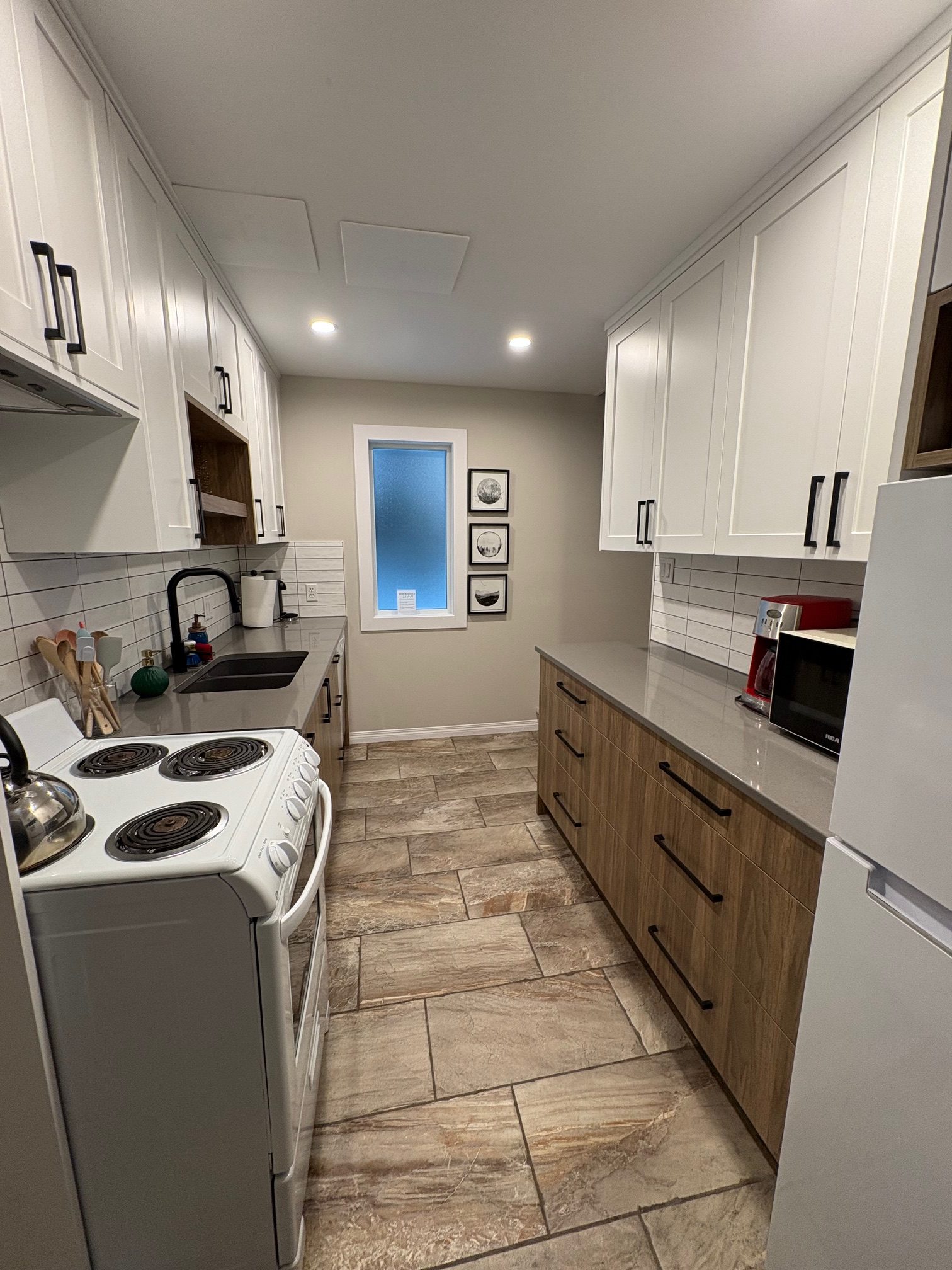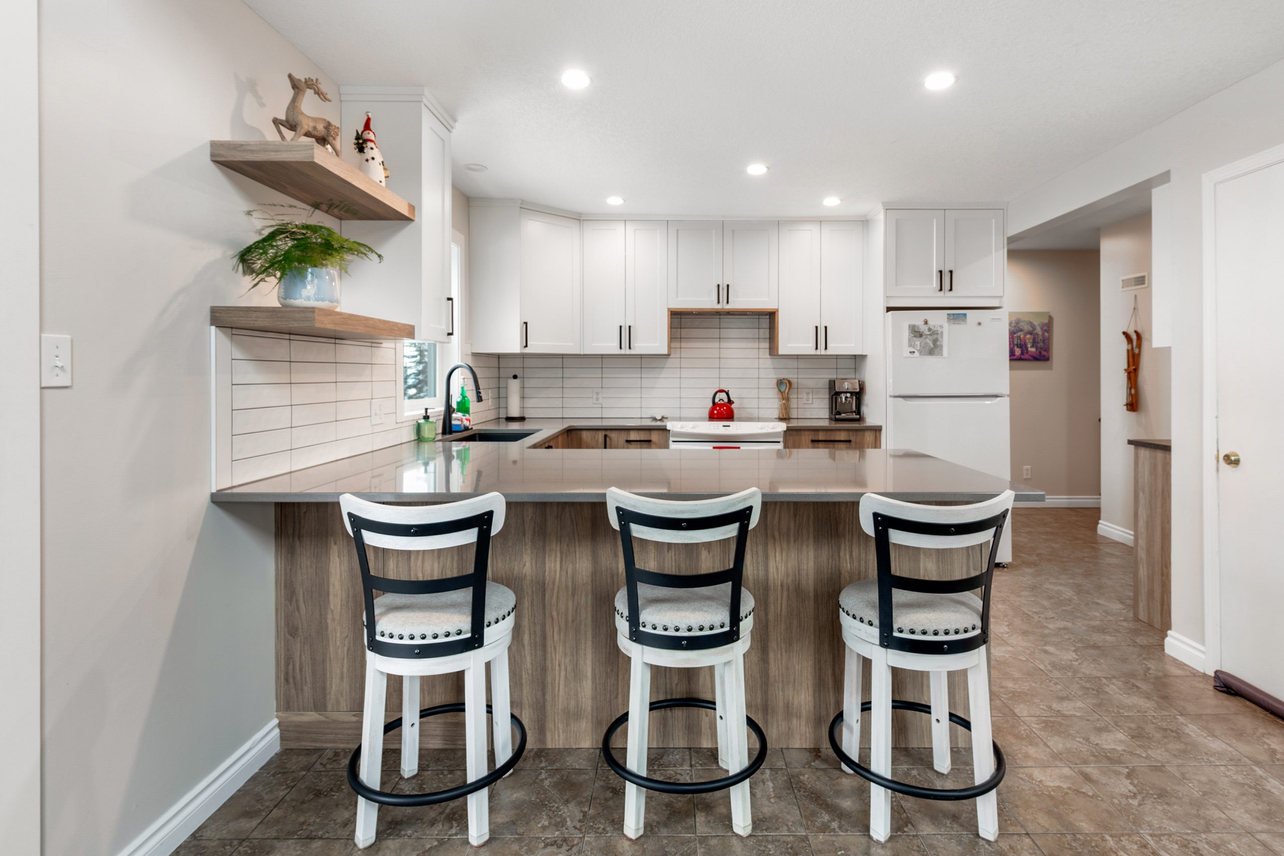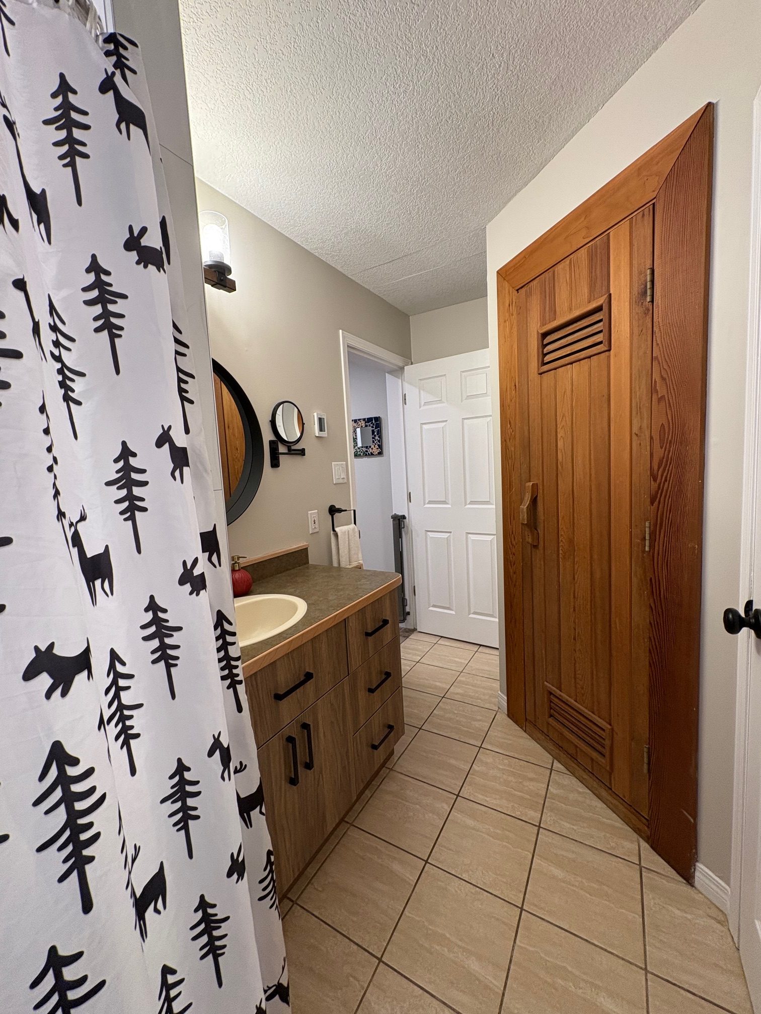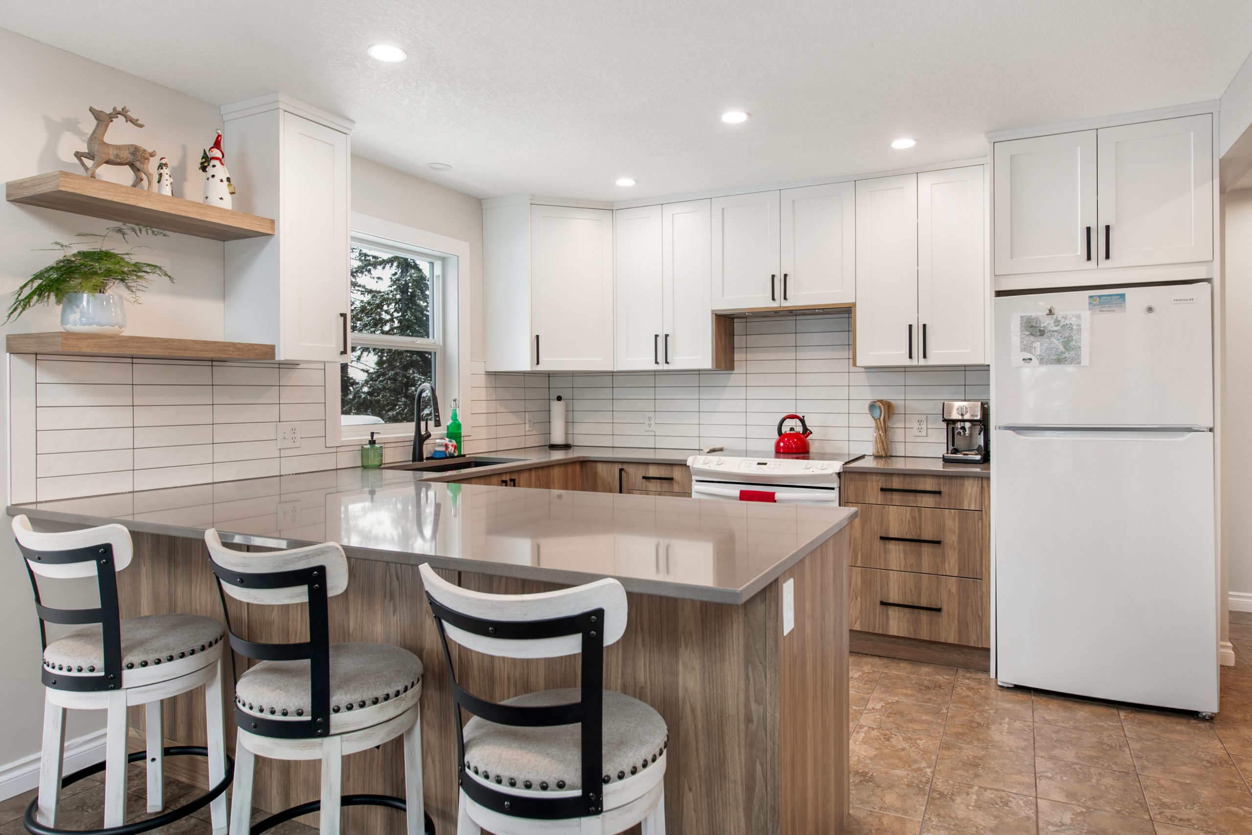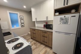 The ground level suite is perfect for those families or groups needing a little extra space. The suite can be internally accessed through a set of stairs in the house and has a full kitchen, two bedrooms, living room with pull-out couch and one full bathroom. This is also where you will find the sauna you can use during your stay. It’s the perfect way to warm up and rest your legs after a long day on the mountain.