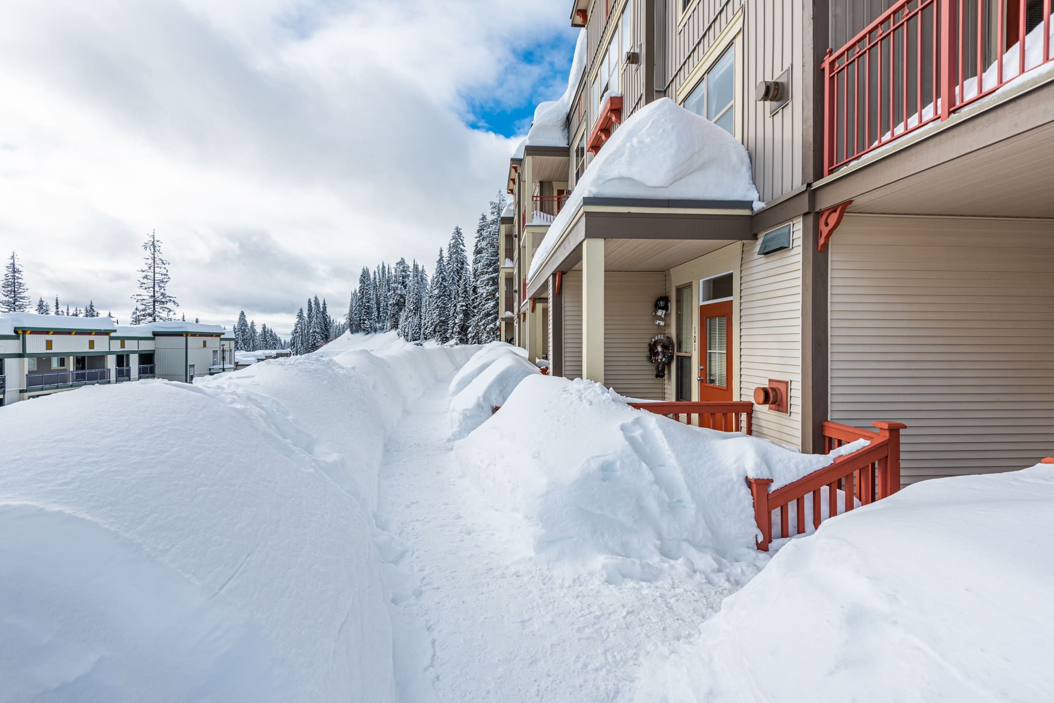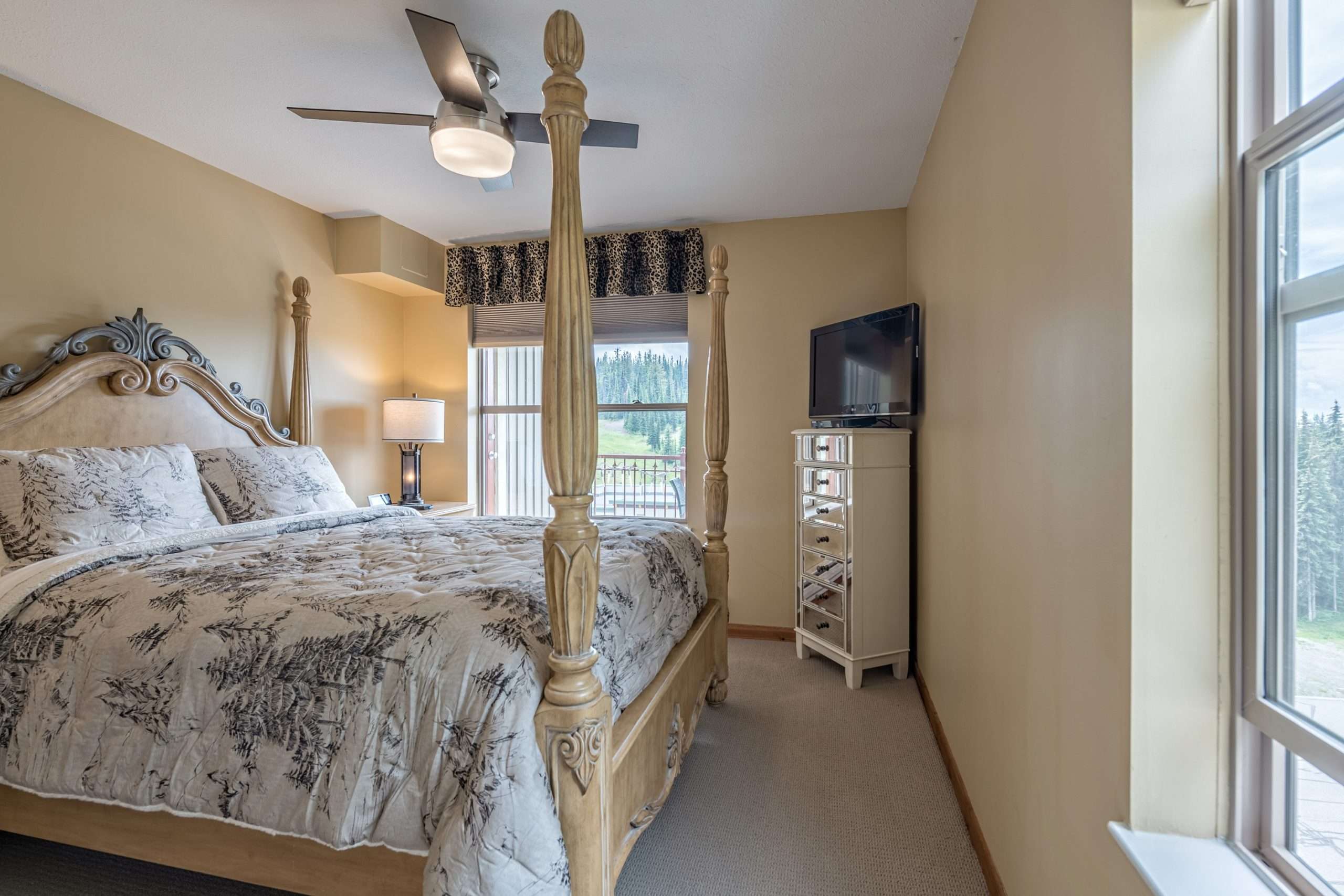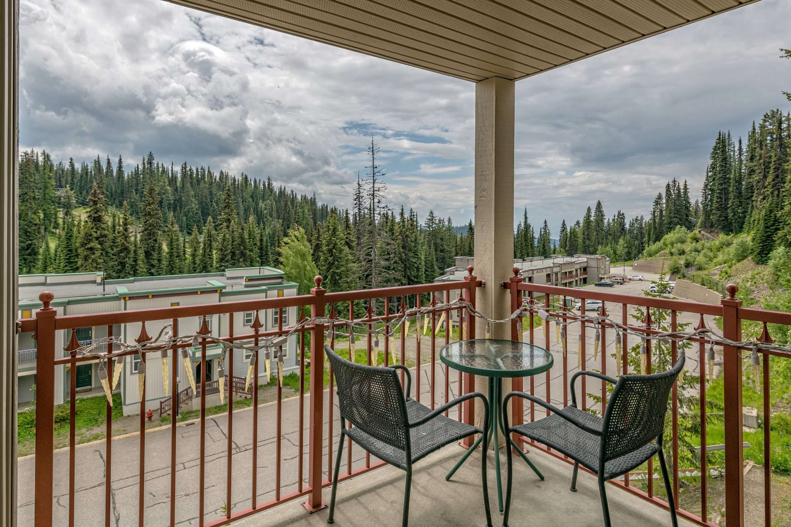 Winterstar is a desirable top floor, corner two bedroom, 2 bathroom condo that boasts extra windows making this a very bright spot. The view from the larger balcony is looking out at Tube Town and the Silver Queen Chair.