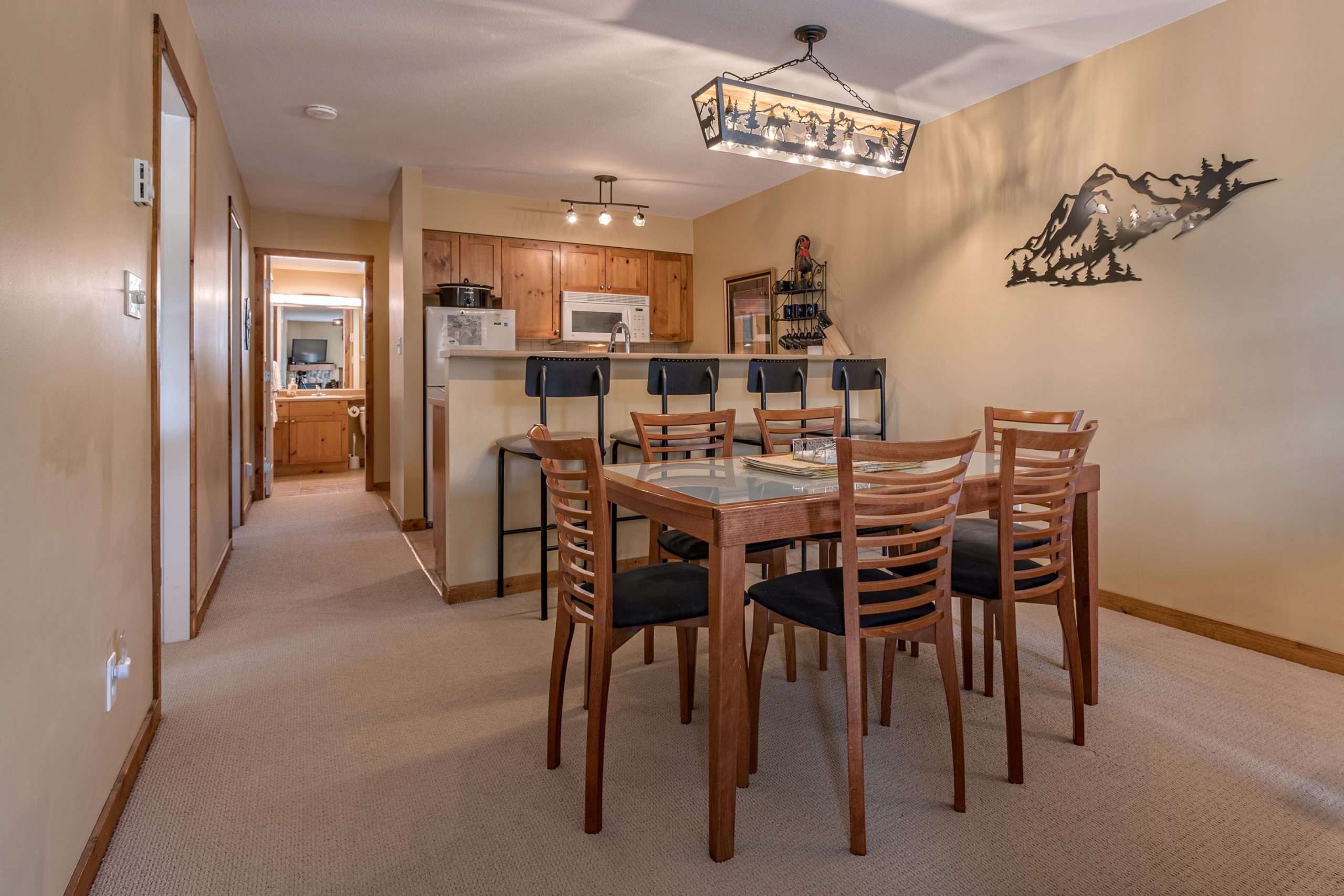 If the dates you are looking for are not available please check out our other rental condos in various sizes in the same building and on the same floor – Snowbound (2 bedroom/2 bath) and Black Diamond (2 bedroom/1 bath). We also have three additional condos on the lower level – Namastay (2 bedroom/2 bathroom), Bluebird Lodge (Studio) and Great Escape (1 bedroom plus alcove/1 bathroom) and two on the first floor, Slopeside at Wintergreen (1 bedroom+alcove/1 bathroom) and Wintergreen Hideaway (2 bedroom/2 bathroom). If you have more than one family or group of friends travelling together we have the perfect solution. Book two or more condos, depending on the size of your group, which provide you with close proximity and privacy.